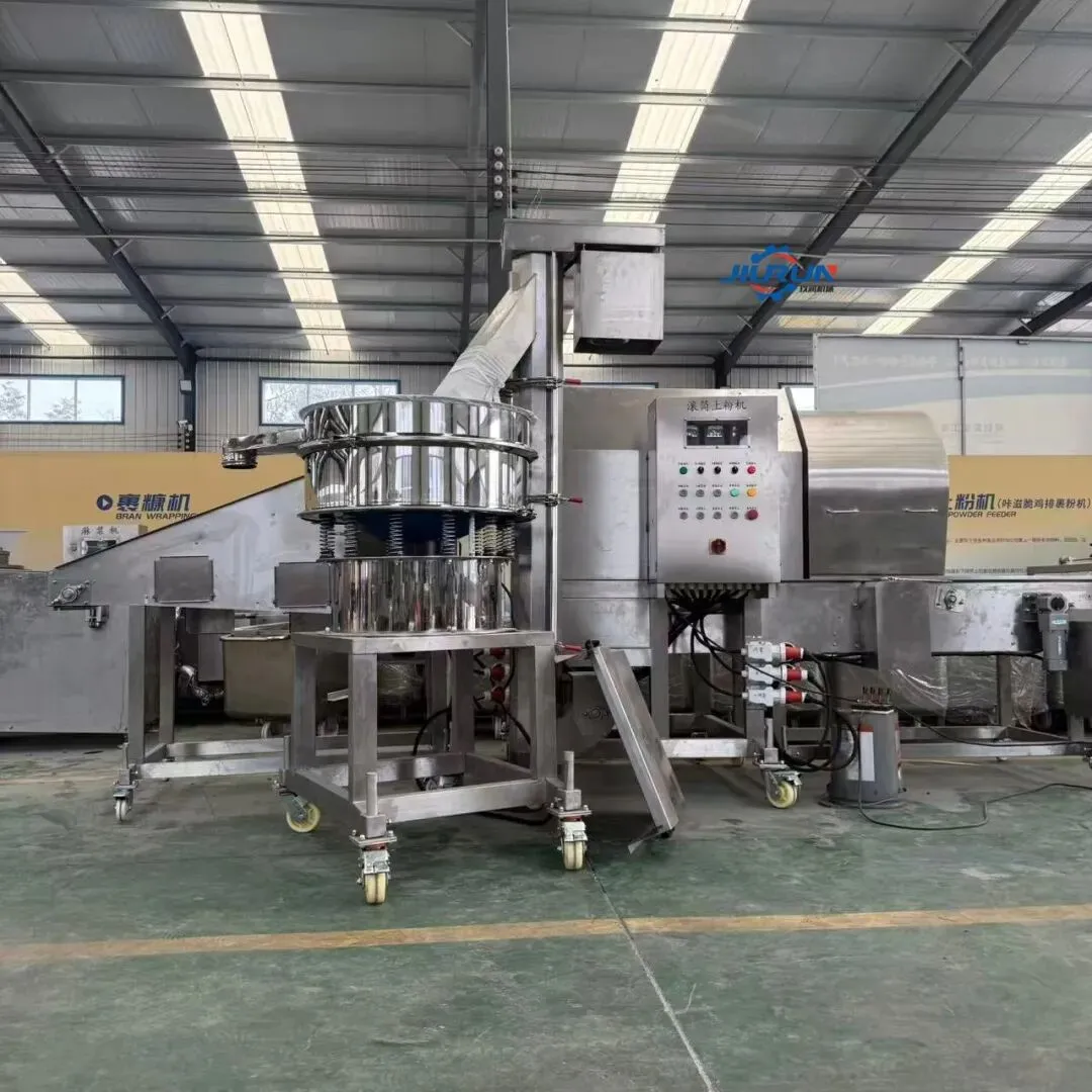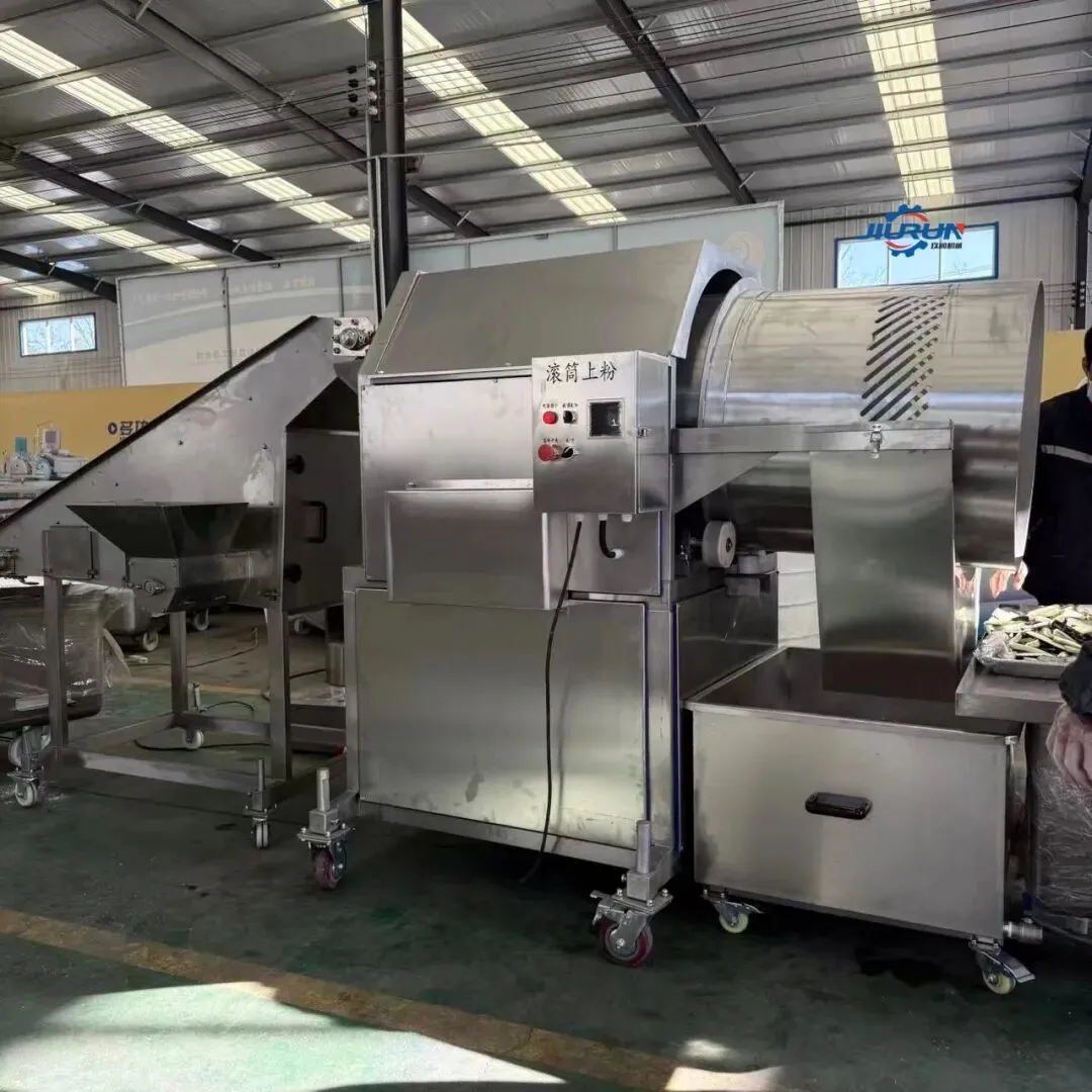 带鱼段上粉上浆生产线,带鱼段上浆机,全自动带鱼裹粉上浆设备,全自动裹粉上粉机 ,商用一体化高速上粉设备随着食品加工行业的不断发展,滚筒上粉机正朝着智能化方向迈进。通过集成的控制系统,实现生产参数的调控,进一步增强生产效率与产品品质。滚筒上粉机已成为食品加工企业增强竞争力的重要工具。