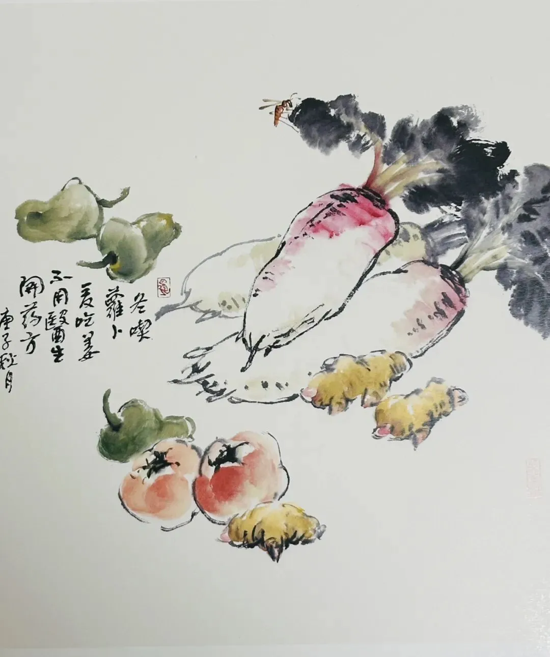 此次展出的60幅佳作,均为姬朝晖先生近年潜心创作的新作。作品以水墨人物为主,兼收蔬果、山水之趣,不仅是他退休后十余载潜心研习水墨画意的阶段性总结,更是他迎来古稀之年,为自己献上的一份沉甸甸的生日“蛋糕”。