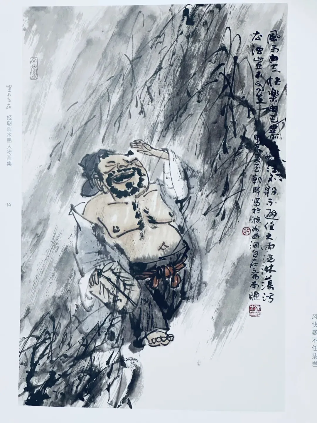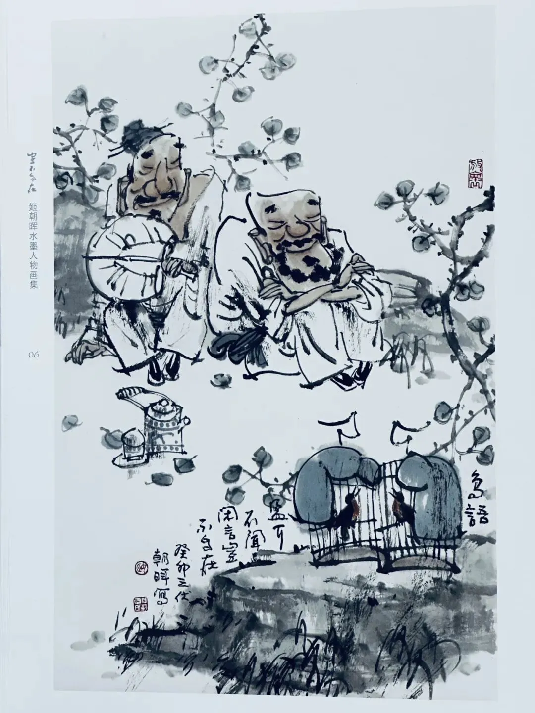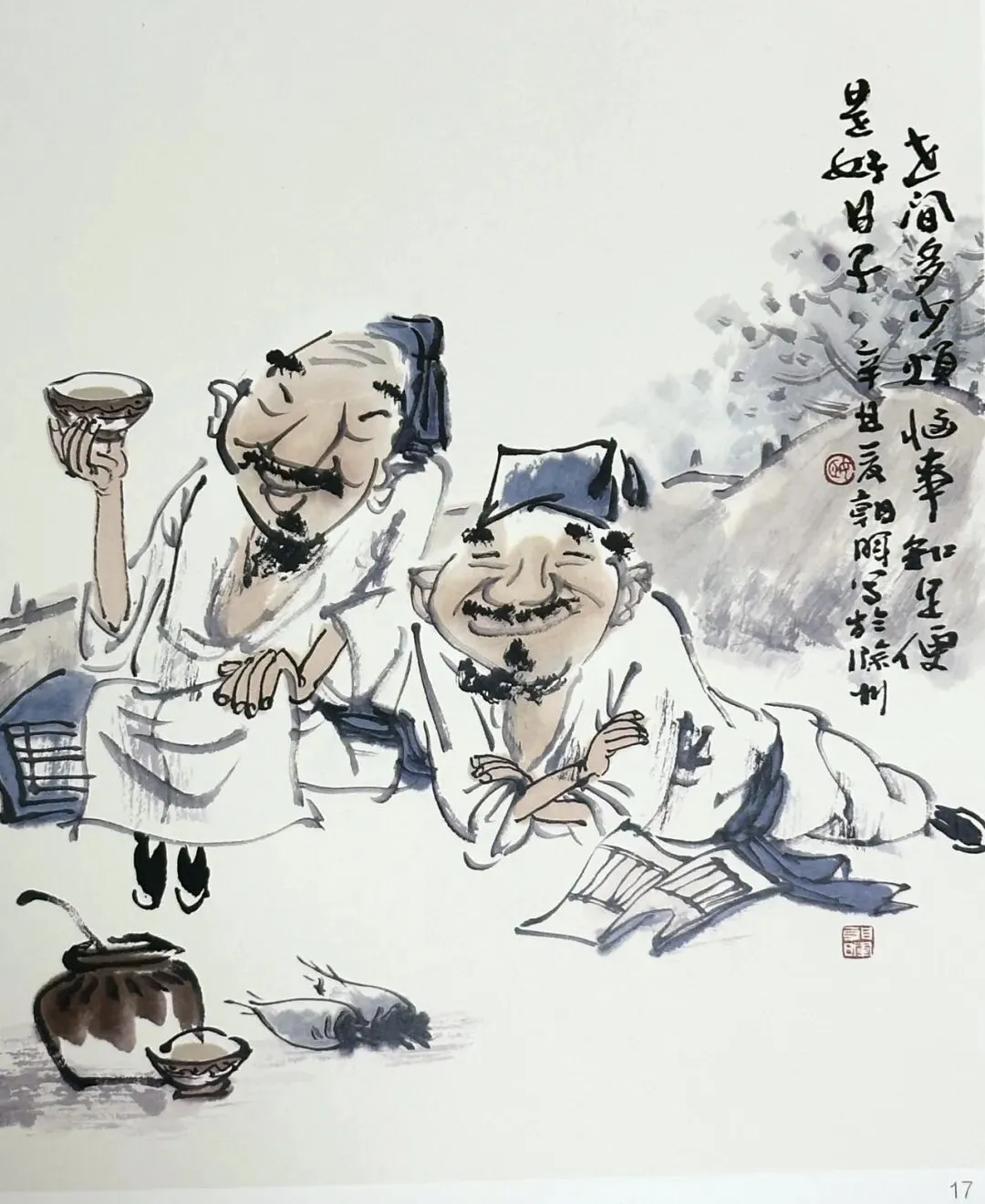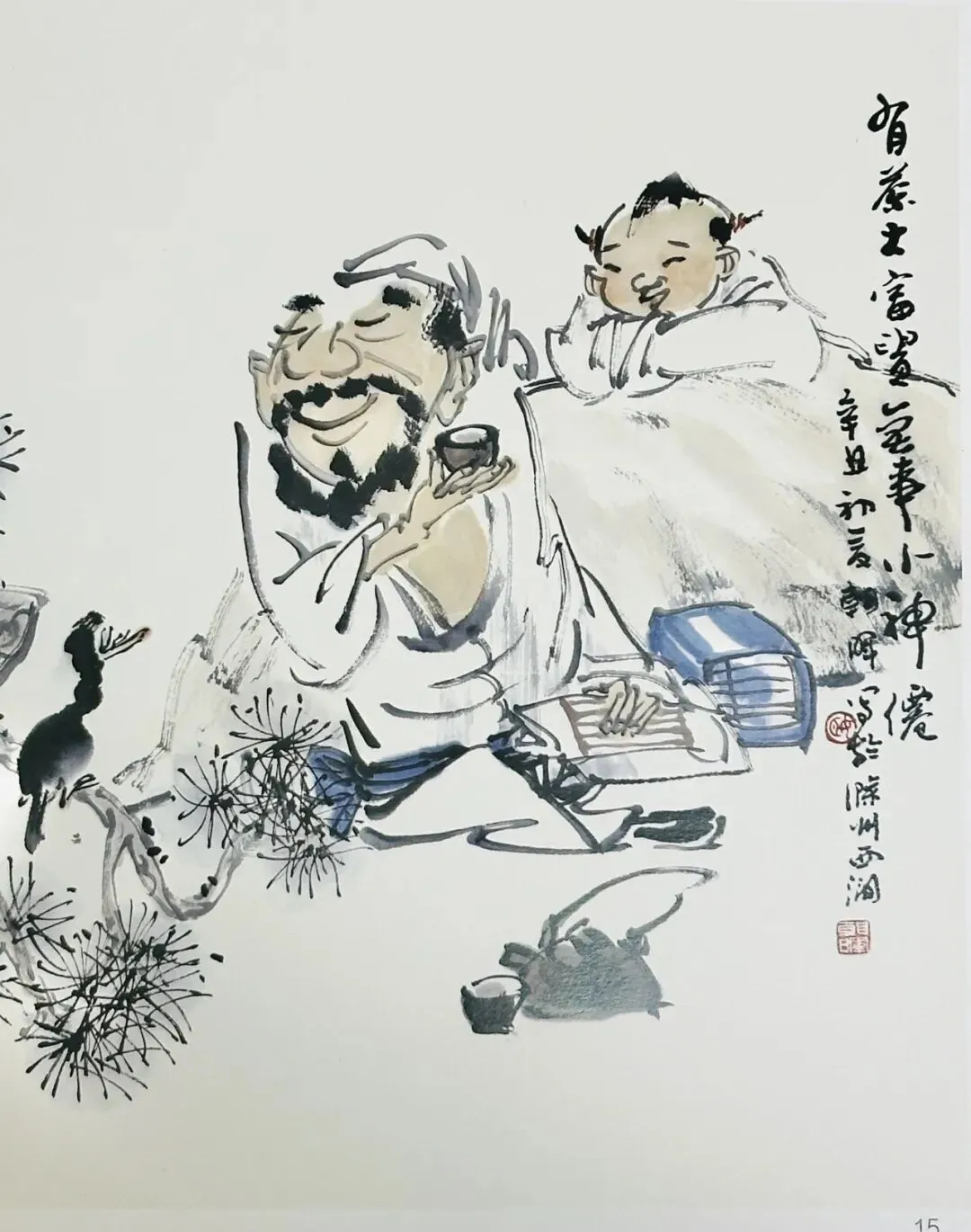 临近退休之际,姬朝晖先生开辟艺术新境,转修国画,主攻水墨人物,兼涉蔬果与山水,一画便是十多年。他大胆探索,将漫画的夸张变形、诙谐幽默与文人画的闲适随性、笔墨情趣融为一体,打破了传统人物画的刻板印象,初步形成了独具个人风貌的艺术风格。其作品既有漫画的深刻哲理,又具中国画的传神韵致,观之令人轻松愉悦,回味无穷。