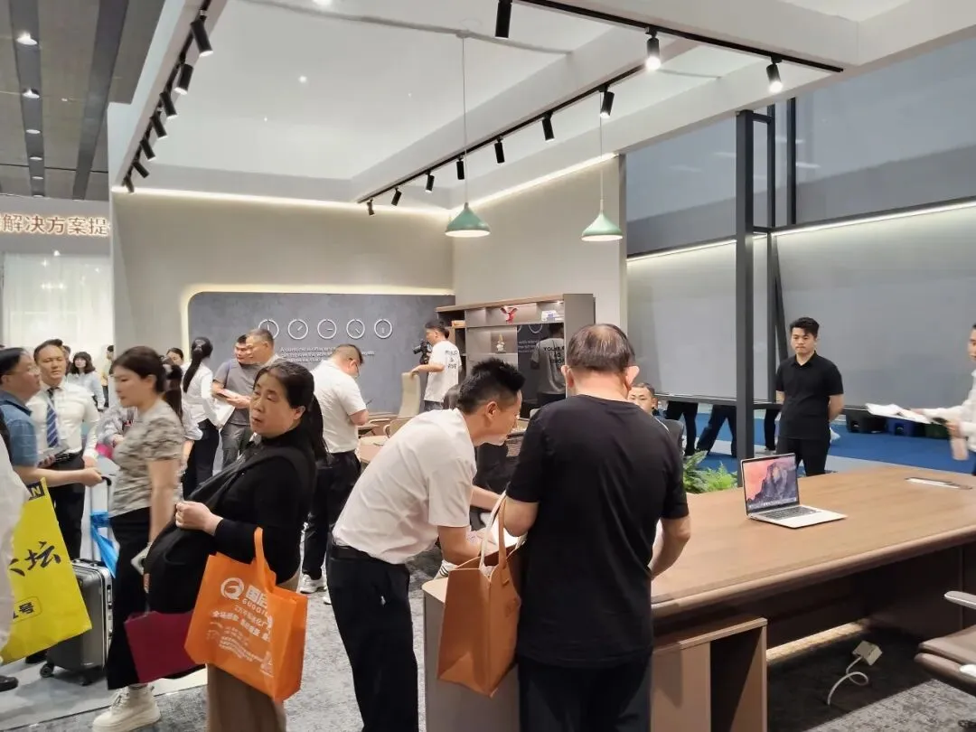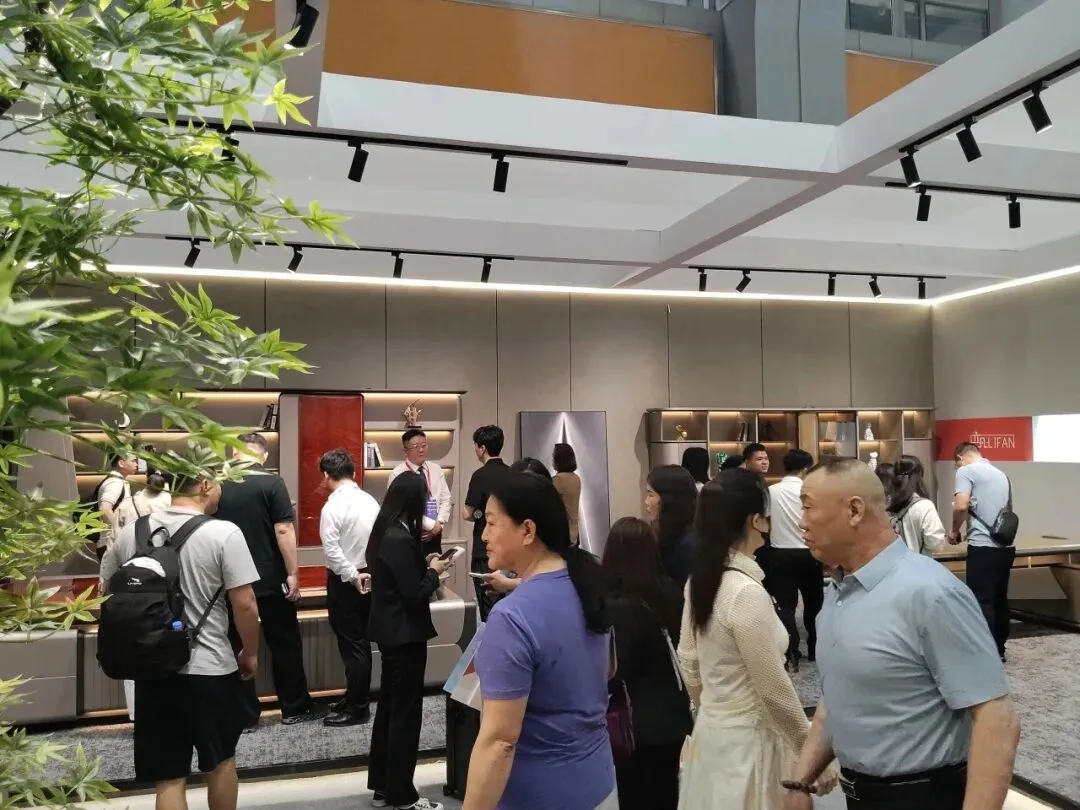 广立家具展位依旧人流如织。