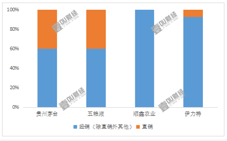 白酒的销售模式主要分为直销和经销两种,前者为白酒厂家直面消费者进行销售,后者则是经过若干层代理,最后流通到市场上进行销售的模式。