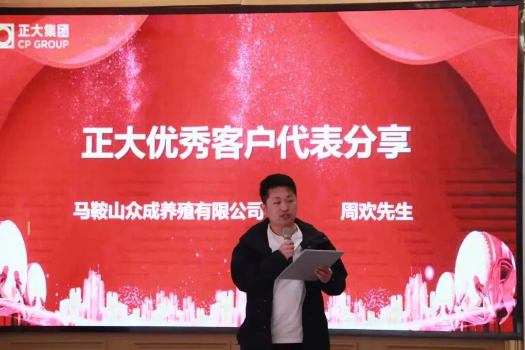 合肥正大猪料皖北料线主管薛玮玮先生带来真诚合作案例分享,通过两位客户的合作历程,展现了正大“务实用心 客户至上”的合作理念。现场正大优秀客户代表讲话,分享了与正大携手共赢的宝贵经验,言语真挚,赢得阵阵掌声,也让在场众人备受鼓舞。