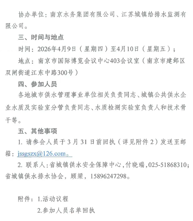 2.联系人:省城镇供水安全保障中心,付晓瑞,025-51868310;省城镇供水排水协会,顾梁,15896247298。