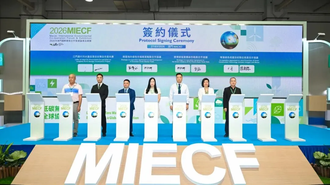 2026年3月26日-28日,以“低碳无废城市,全球协力启航”为主题的澳门国际环保合作发展论坛及展览(MIECF)在澳门举办。江门市生态环境保护产业协会主动搭建湾区交流合作桥梁,组织会员企业积极参与本次展会,助力江门环保企业链接优质资源、深化行业协作,共促区域环保产业发展。