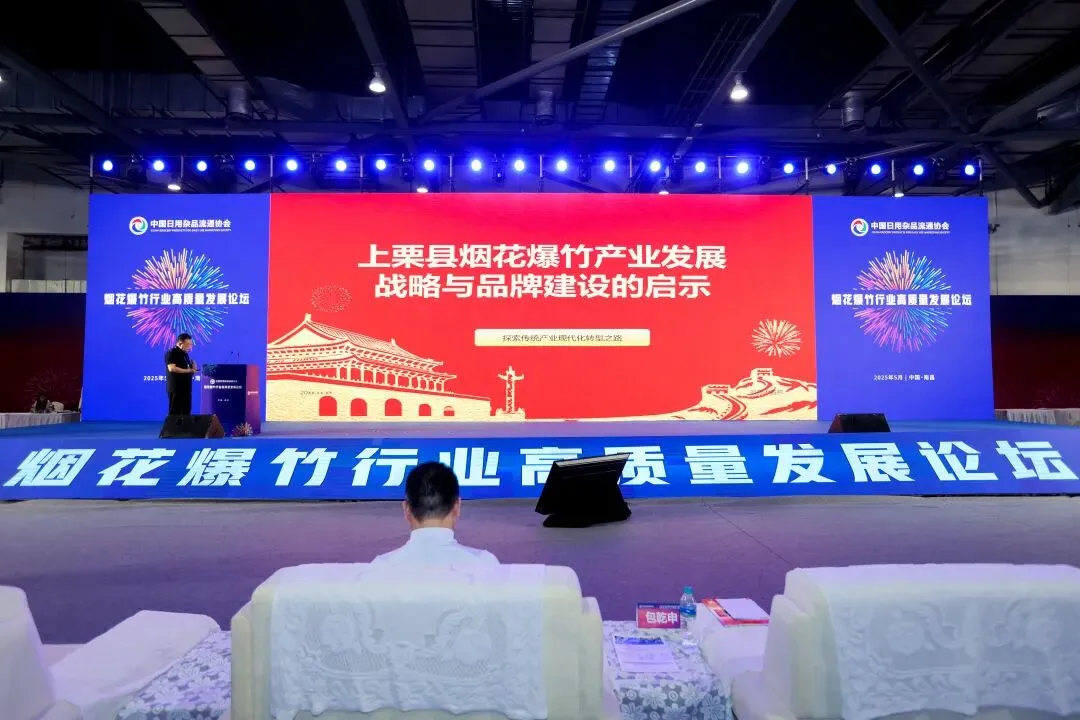 政企齐聚,共话行业未来。开幕式上,上栗县作为全国烟花爆竹主产区代表发言,47家上栗企业组团参会。