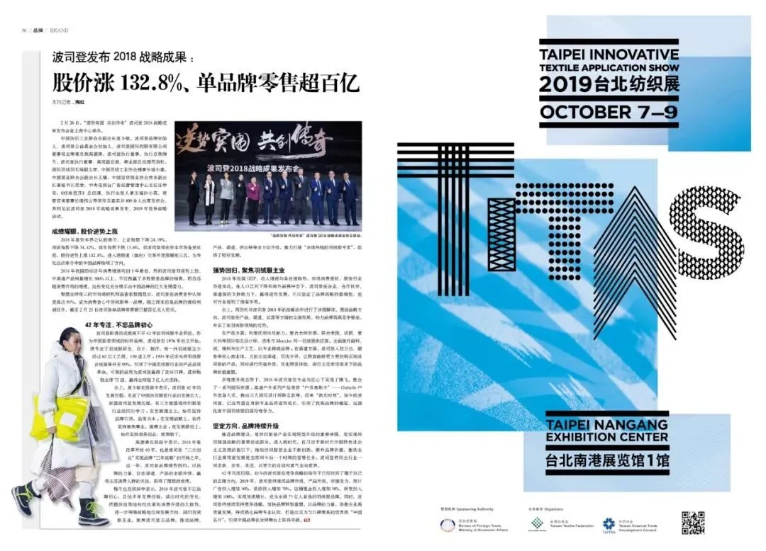波司登发布2018战略成果:股价涨132.8%、单品牌零售超百亿