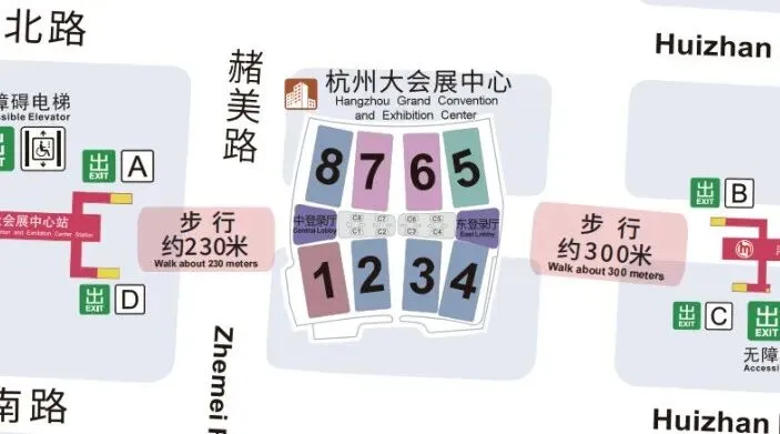 图:杭州大会展中心整体分布及周边交通示意图。