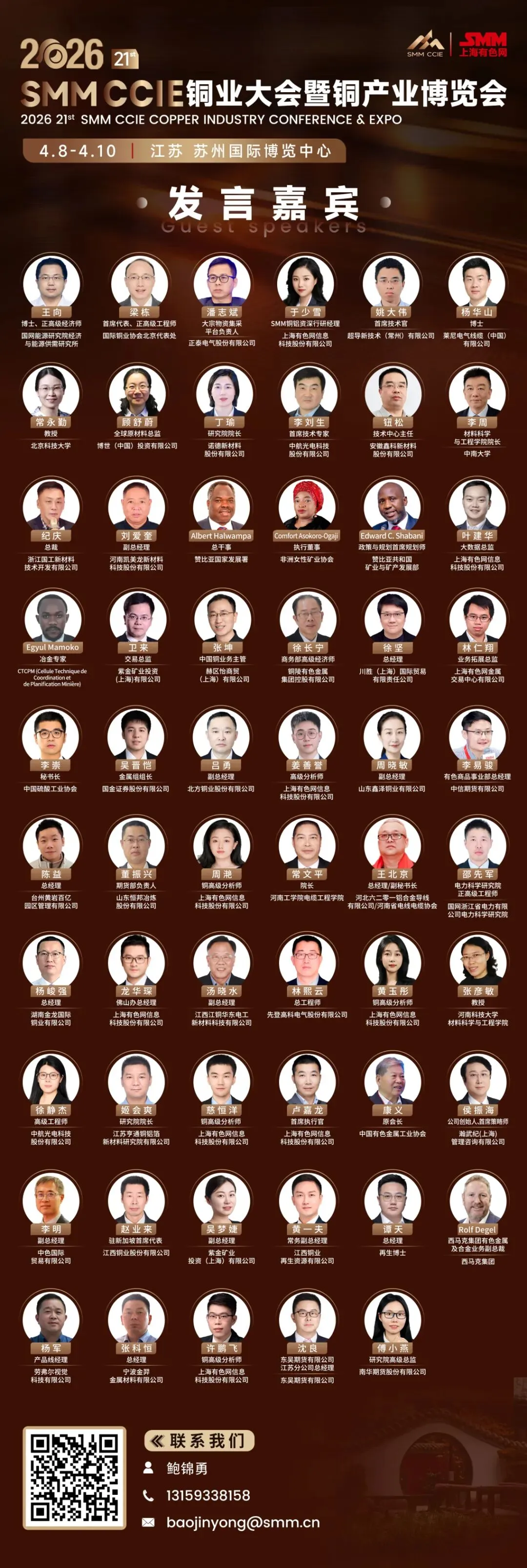 2026 CCIE铜产业博览会将汇聚来自世界各地的政府官员、铜产业领袖、学术精英以及行业组织代表,共同聚焦全球铜市场的最新动态、铜价走势分析、供需平衡状况、商业合作机会以及技术革新等关键议题。我们将深入讨论如何推动铜产业朝着更环保、更高效、更可持续的方向发展。(完整嘉宾名录图鉴,下滑查看↓)