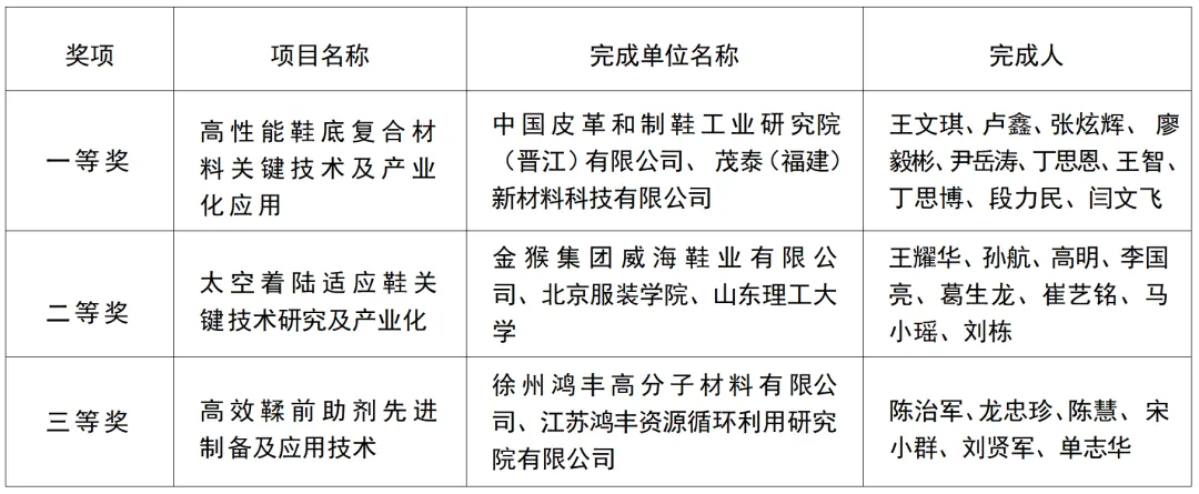 皮革行业四个项目荣获中国轻工业联合会科学技术奖