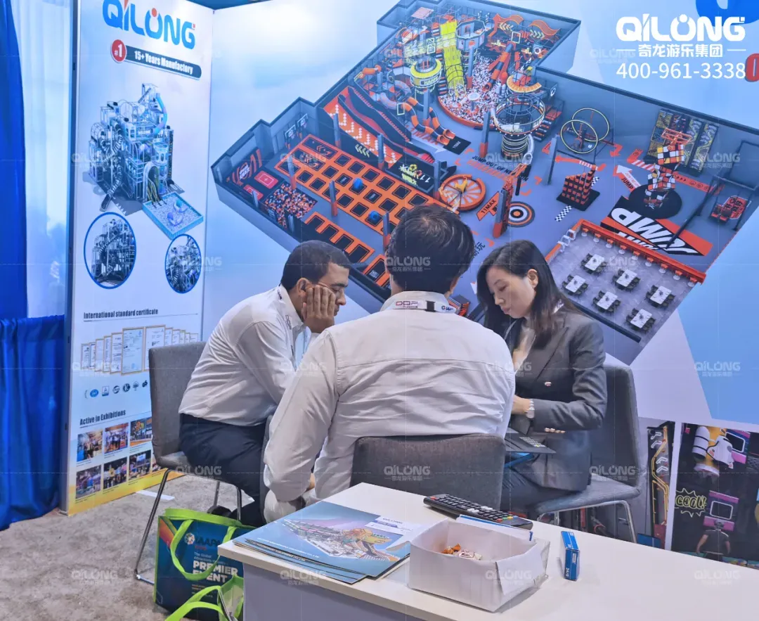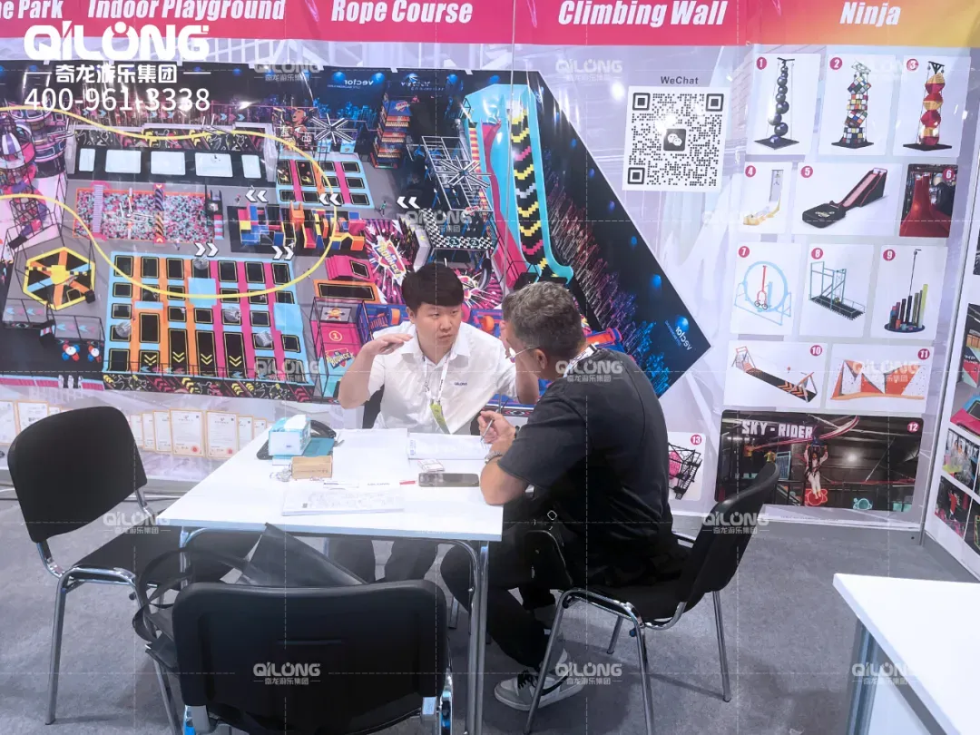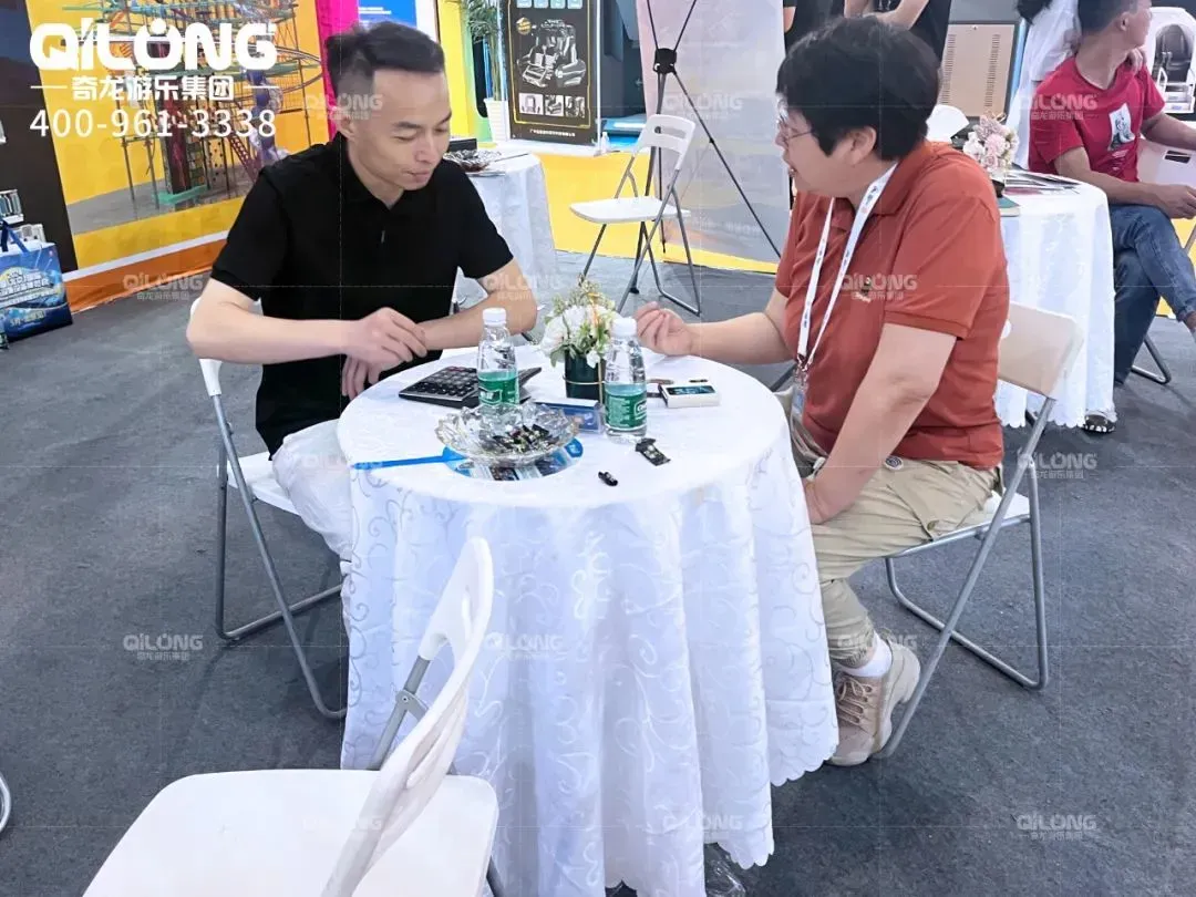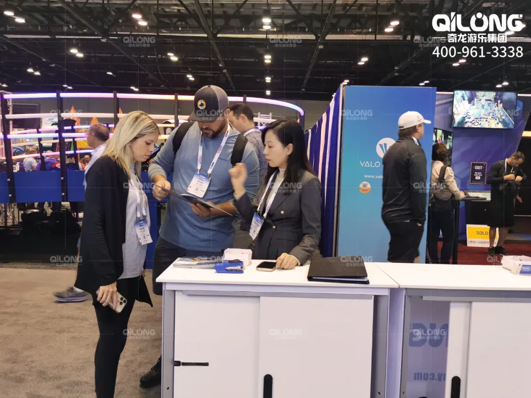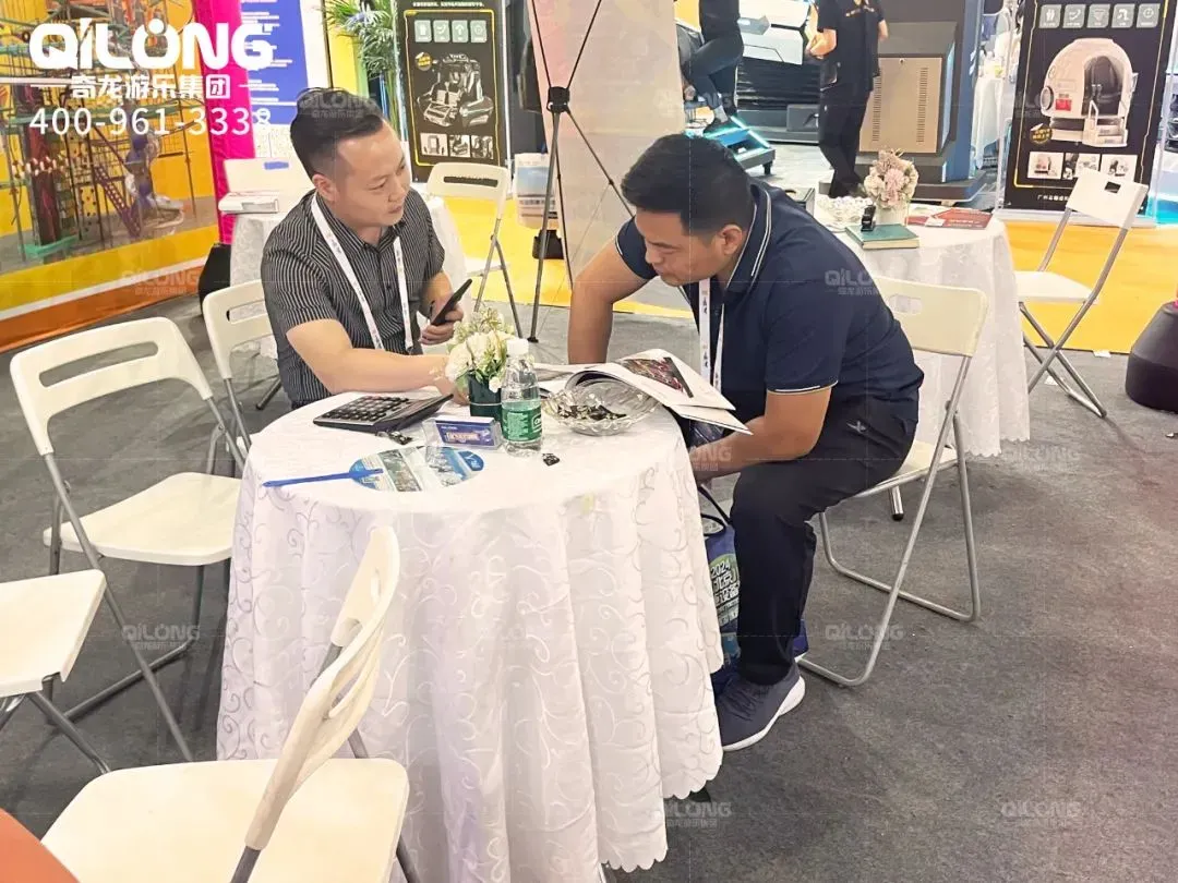 奇龙专注于研发设计,把握发展趋势,始终坚持技术的不断创新,为“中国制造”稳步走向世界提供强大的产品。第19届亚洲乐园及景点博览会于2023年5月10-12日在广州·广交会展馆A区举办,期间吸引了来自各地的近千家企业参展,展示了各自最新的产品和创新的技术。本次博览会不仅为参展商和观众提供了一个专业交流的平台,也为游乐行业的发展提供了新的动力。本次博览会我司由董事长姚总亲自带队,带领公司内销部、外贸部员工一同前往参展。此次展会的主要展品为太空主题系列产品。博览会现场奇龙游乐的员工始终热情真诚的为每一位客户耐心讲解产品、分析市场等,认真回答、仔细聆听客户需求。奇龙本着客户第一的宗旨,不仅对产品质量严格把关,更是从服务细节处处都能得以体现。尊敬的各位客户及嘉宾朋友,