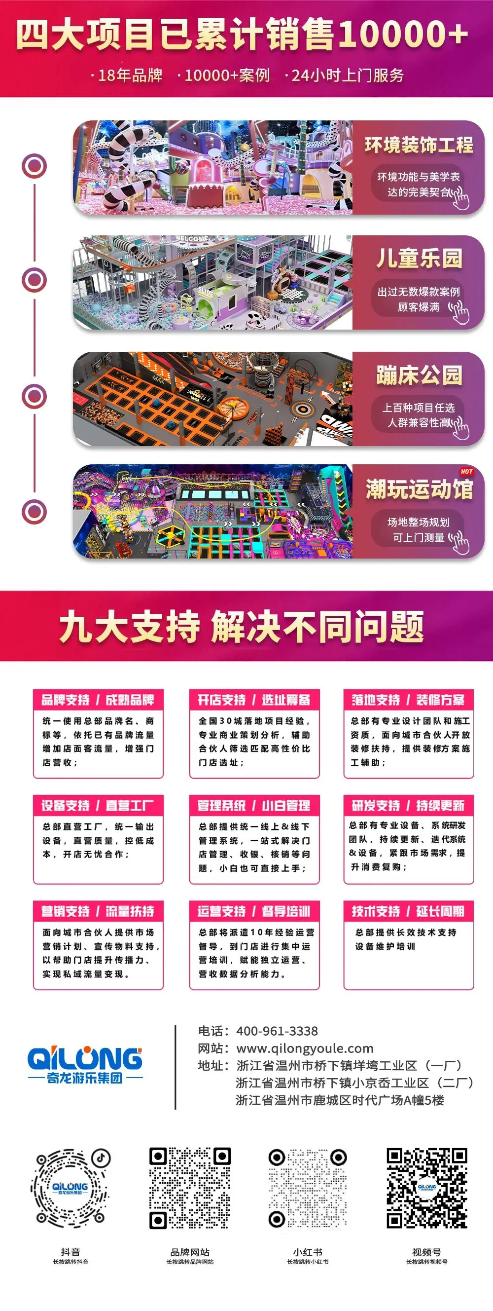 奇龙游乐集团始创于2009年,深耕儿童主题乐园行业,是一家集新型儿童游乐设备原创设计、产品研发、专业生产、安装维护、运营指导于一体的综合性企业。