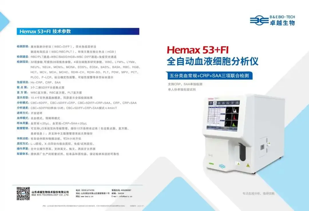 1. Hemax系列血液细胞分析仪:含三分类、五分类机型,适配各级临床实验室,配套试剂与质控品性能稳定,助力精准血液检测 。