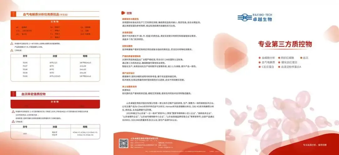 卓越生物成立于2000年,总部位于烟台,北京设研发中心,是集研发、生产、销售于一体的高新技术企业 。现有员工200余人,研发技术人员占比27.4%,硕士及以上学历占12.3%,核心团队覆盖电化学、光学、分子生物等多领域,与海内外专家深度合作,持续攻关体外诊断技术 。公司产品获CE认证及FDA试剂注册,血液学实验室连续10年以上获卫生部临检中心质控优秀,实力领跑行业 。