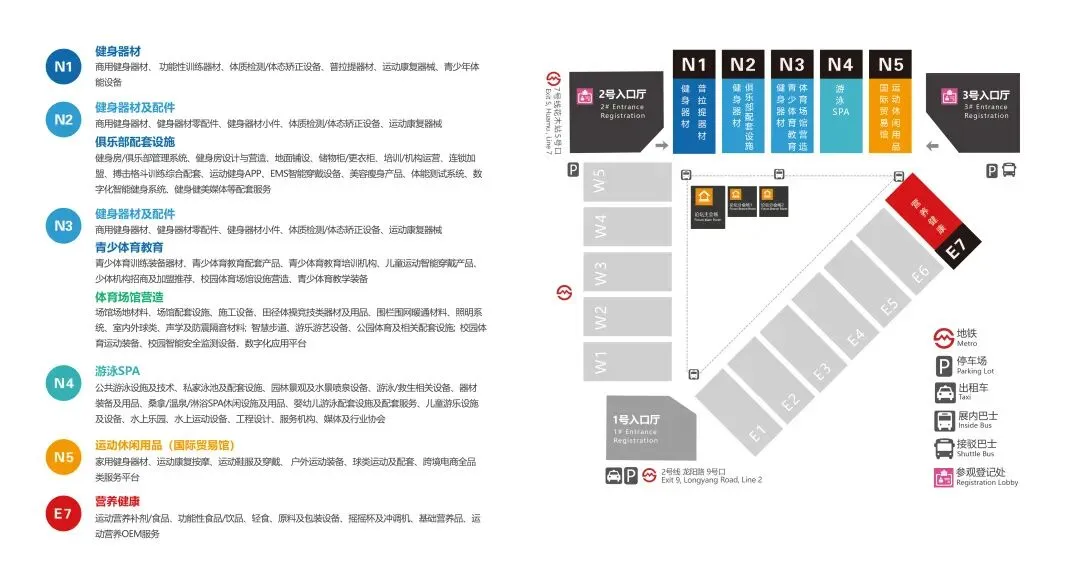 IWF2024将在原有规模上增设E7馆,以全、高、特、创、智为特色精心设置的十二大细分展区,包括:健身器材(商用),普拉提器械及服务,俱乐部配套,青少体育教育,体育场馆营造,台球桌及配套,游泳SPA,出口家用健身器材及运动训练小件,运动鞋服及装备,运动康复训练,现场外贸选品对接及跨境配套服务,营养健康等全品类,向展商和买家提供更佳的服务场景。