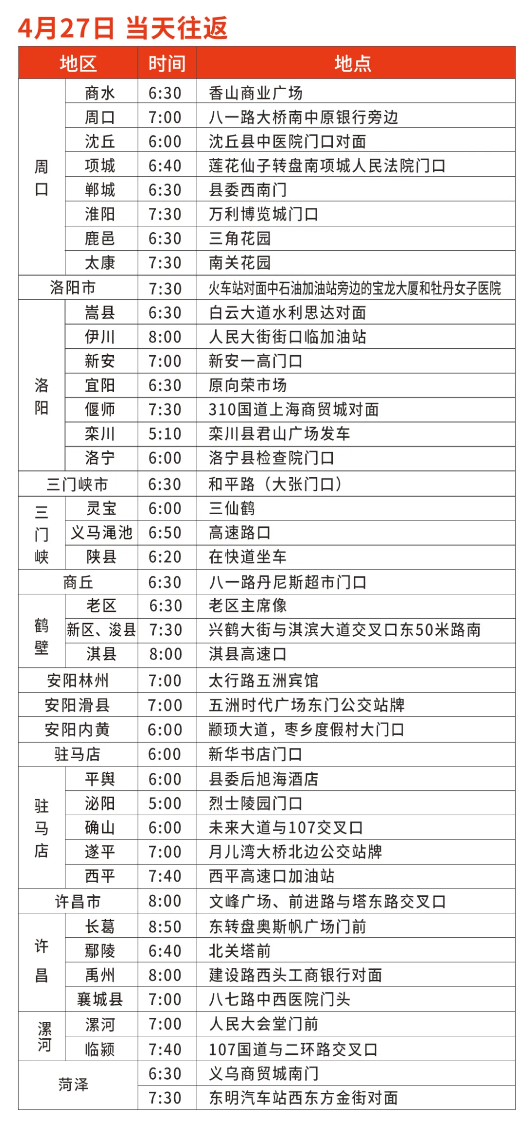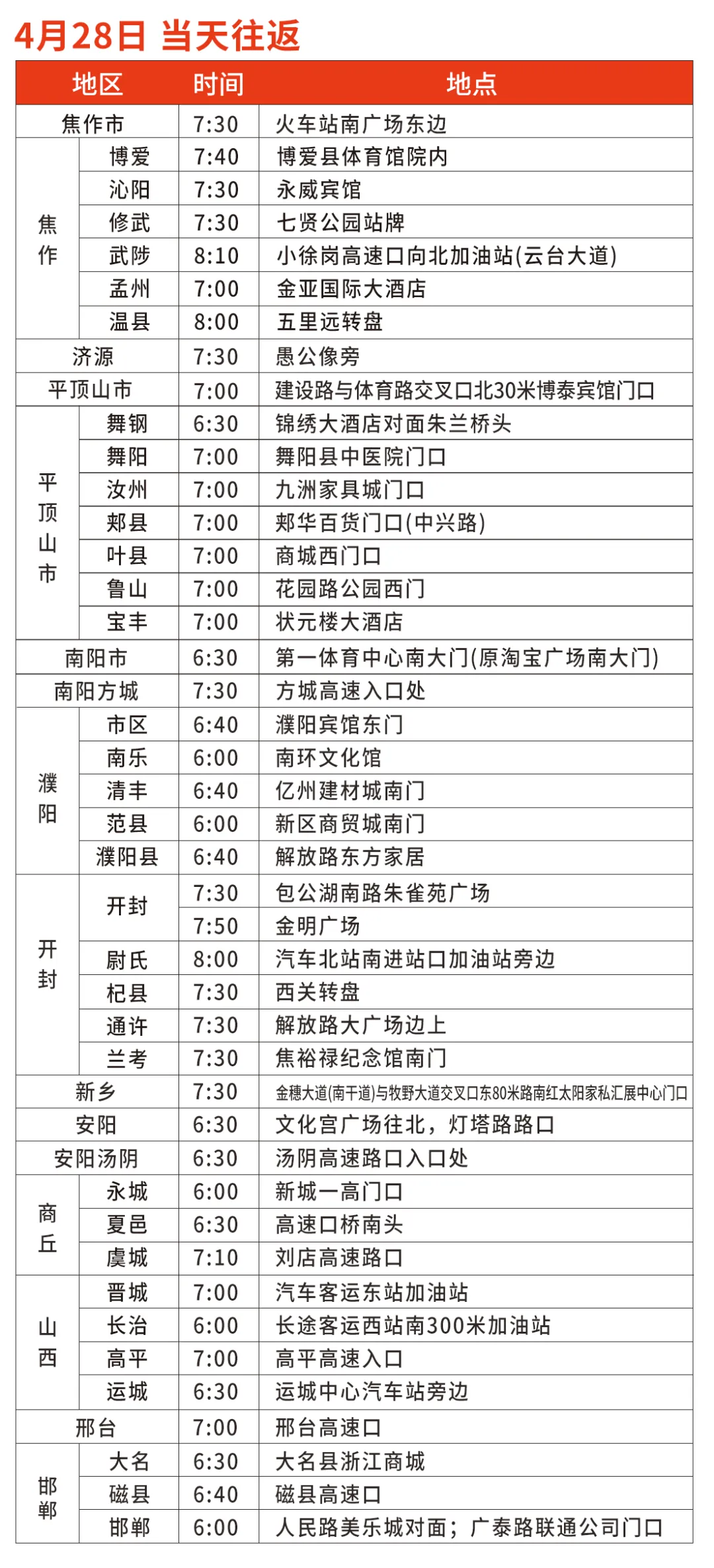 大巴车乘坐时间及地点