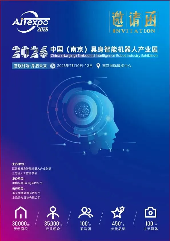 当人工智能从“云端”迈向“具身”,当智能终端与实体机器人深度融合,一场重构未来产业生态的科技盛宴正蓄势待发!我们诚挚邀请您参加2026中国(南京)具身智能机器人产业展——作为2026人工智能终端产业博览会的核心板块,本次展会由江苏省具身智能产业联盟与江苏省人工智能学会联合主办,将于2026年7月10日至12日在南京国际博览中心盛大启幕。
