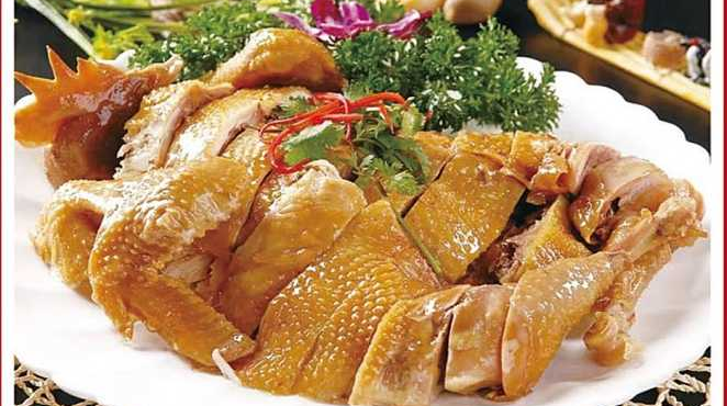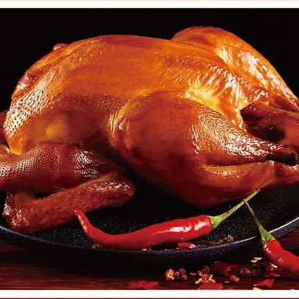 五香烧鸡是鲁菜的经典菜之一,将涂过蜂蜜的鸡油炸,然后用香料制成的卤水卤制而成,产品香味浓郁,咸淡适口,熟烂离骨,肥而不腻,辅之陈年老汤制作,可谓汤越老,肉越香。