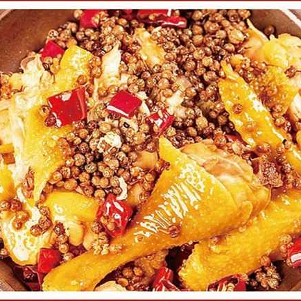 麻椒鸡是川菜代表之一,因地制宜,采用煮、 泡、吹、撕等工艺精工制作,食用时取麻椒、花椒拌匀,吃起来清香味十足,麻辣可口。