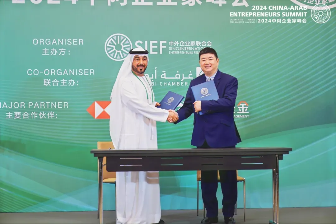 在2024中阿企业家峰会现场,与会嘉宾共同见证了Jebel Ali Free Zone Trader Market Development and Operation FZCO的副总裁 Mohammed Al Ameri 和新秀集团董事局主席施纪鸿成功签署迪拜国际消费品博览会DICPE (DUBAI INTERNATIONAL CONSUMER PRODUCTS EXPO)项目协议,共建中阿贸易平台。