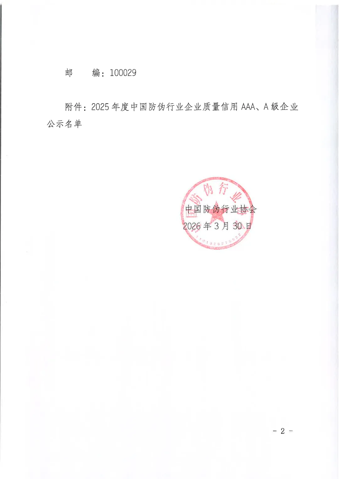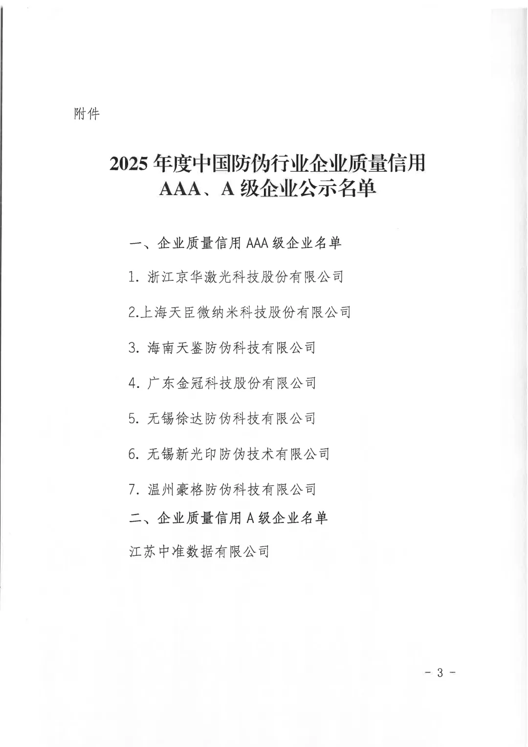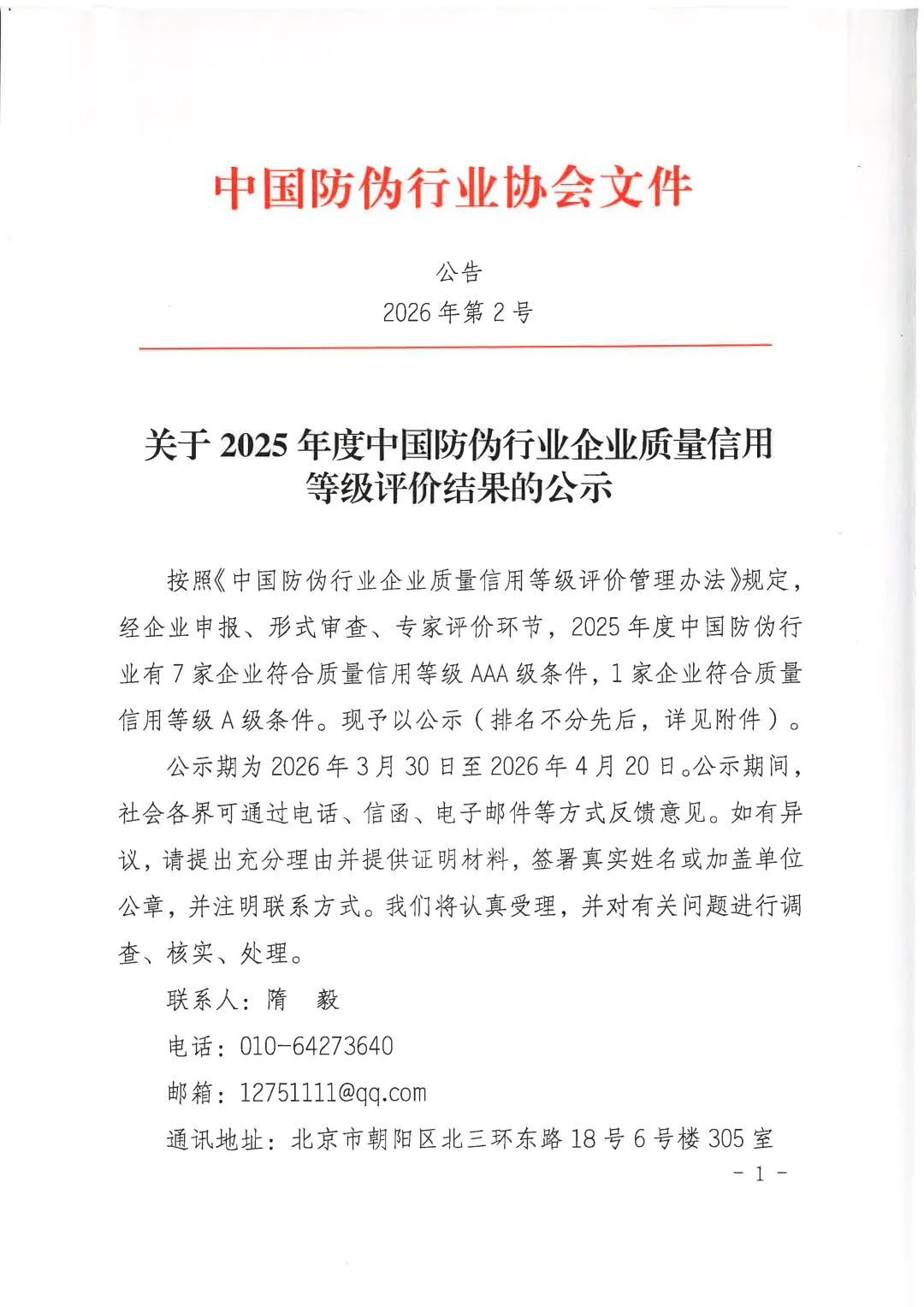 协会通知 | 关于2025年度中国防伪行业企业质量信用等级评价结果的公示