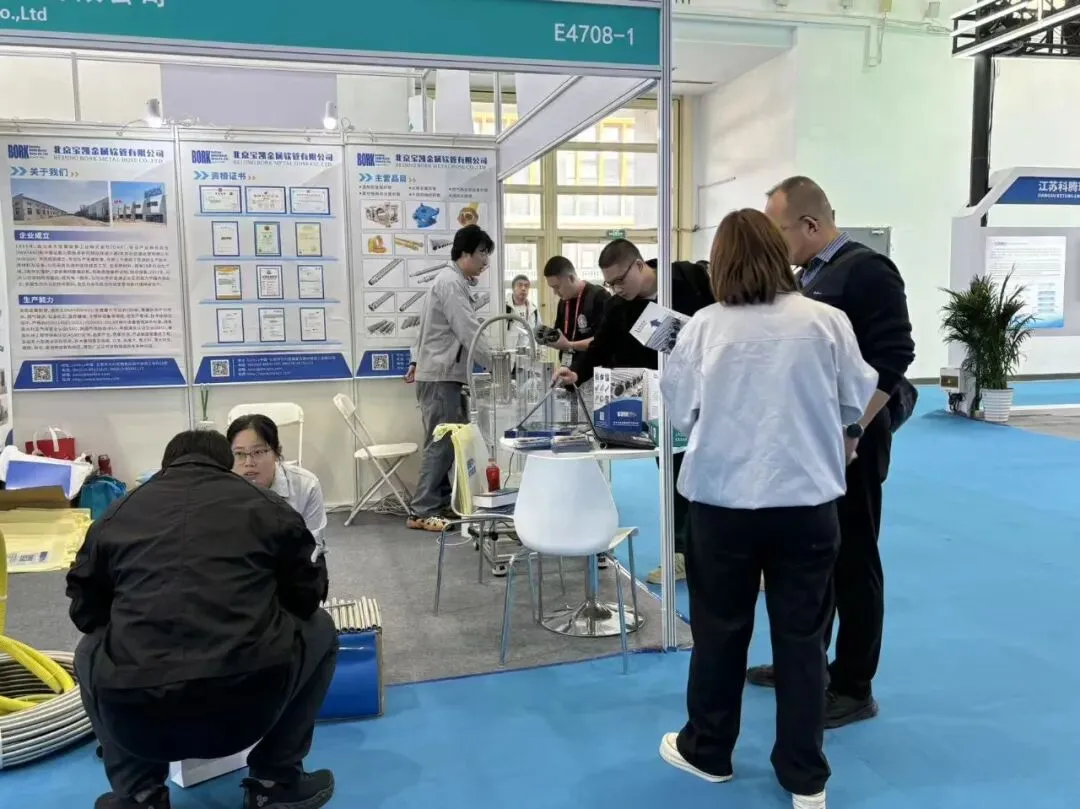 展会期间,北京宝凯金属软管有限公司展台(展位号:[E4708-1])人气高涨。此次参展,北京宝凯金属软管有限公司重点展示了消防用喷淋管、双层保温管、高承压软管、真空管路、天然气输送管等产品,吸引了众多国内外专业的观展商驻足交流。
