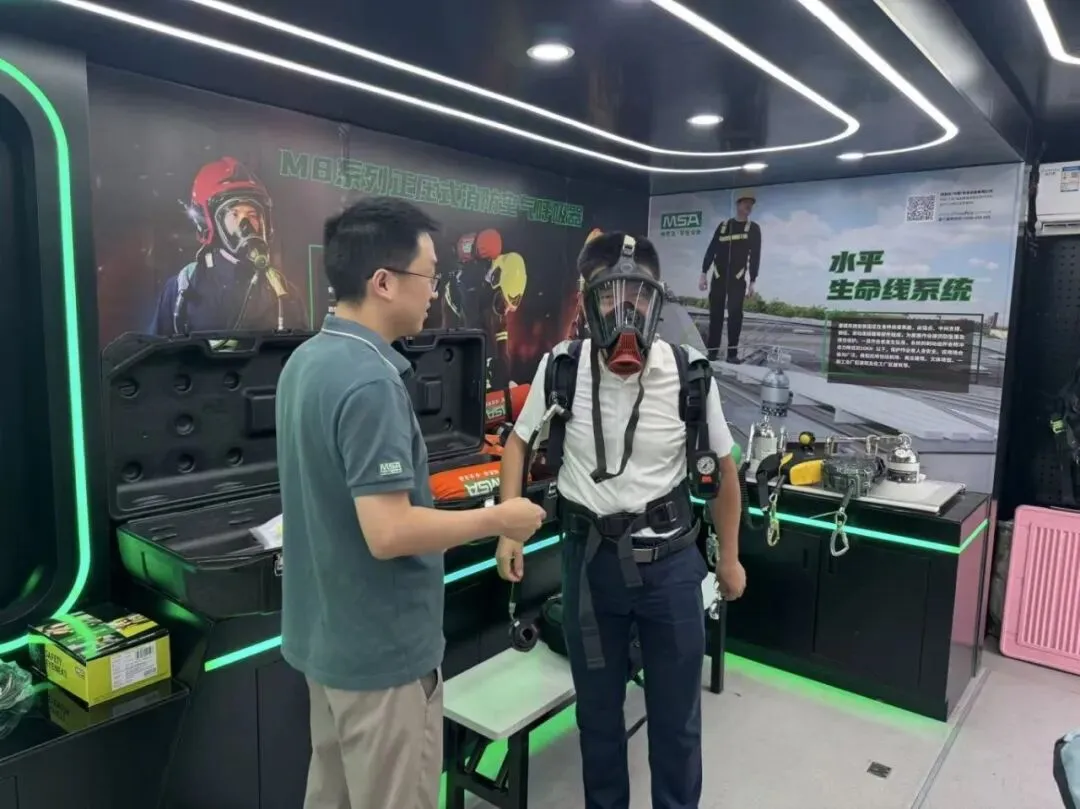 车外可以进行有限空间救援演示,车厢内部则是一个丰富多元化的产品展示空间。路演车可为石油、化工、天然气、消防、冶金、电力、建筑、矿业等多个行业的客户提供现场培训服务,将梅思安的安全理念传递到全国各地。