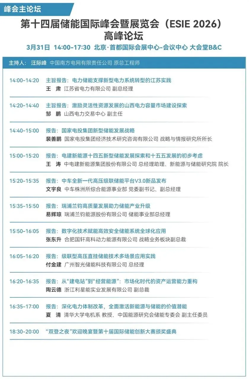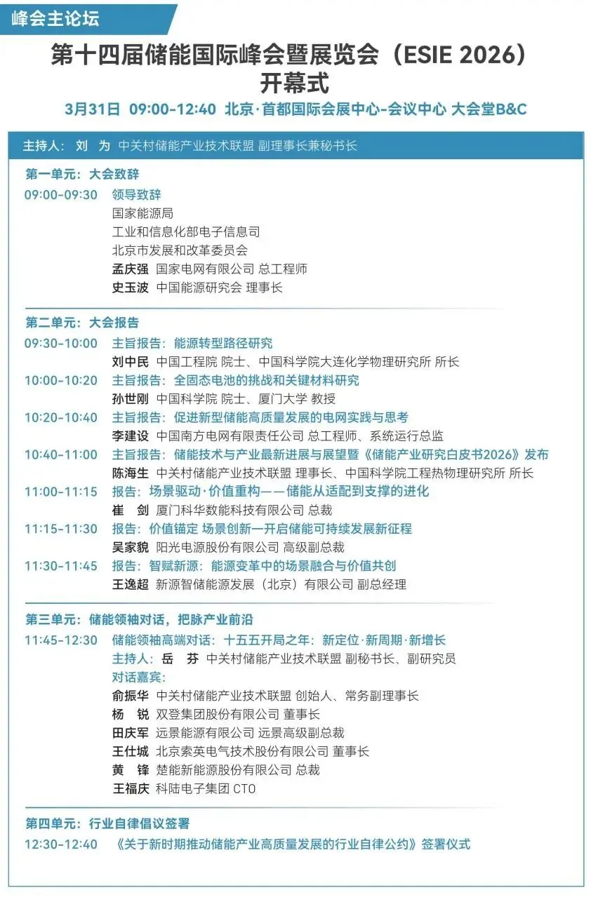 峰会活动丰富,分为论坛活动(需购票或受邀)、免费开放活动及仅限受邀活动,您可以根据自身身份与参会目标,灵活选择参与。详见:亮点抢先看!ESIE 2026储能展会全攻略