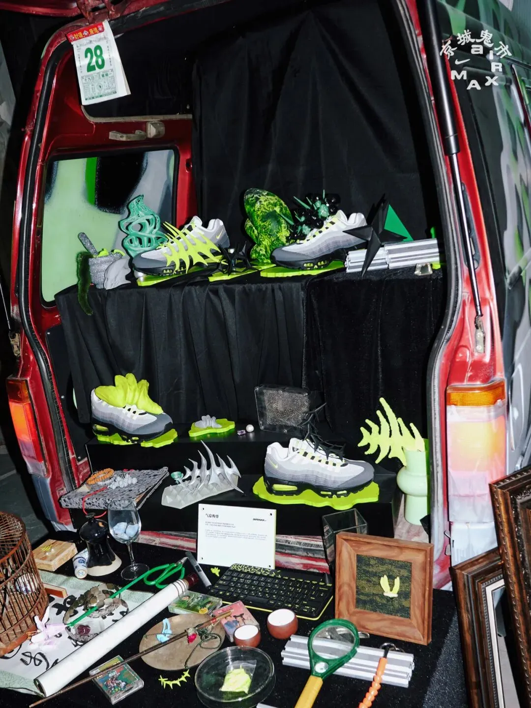 NIKE邀请了央美的青年设计师群体以 Nike Air Max 95 为原点进行创意探索,作为创作者参展 Air Max Day 京城鬼市展览,并安排了Artists in Studio 的专场手搓创意工作坊。