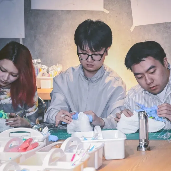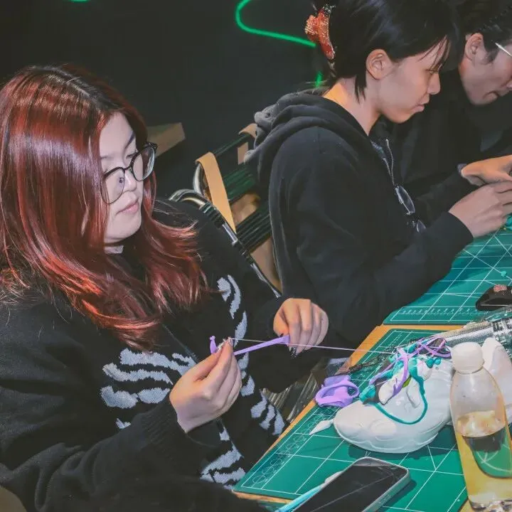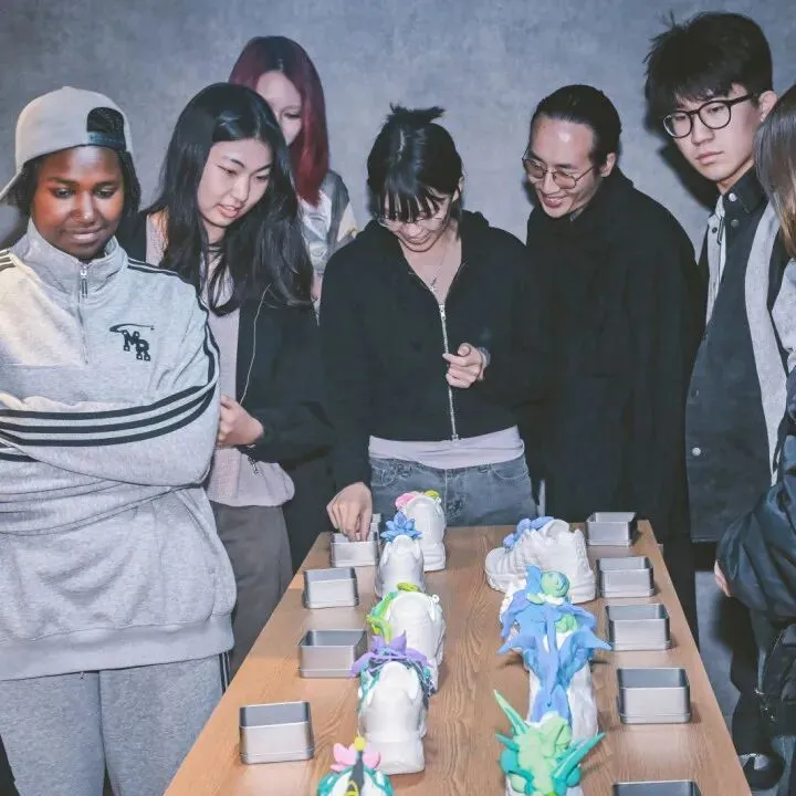 央美的青年创作者们为整场创意活动注入活力, 在「Artists in Studio」工作坊里,他们用黏土捏出别具一格肌理,转身通过 3D 打印让脑洞秒变现实;在声音打印工作室里录入自己独一无二的声音,打印出专属挂件;在老汽车后备箱的展柜前,他们的作品成为手电下最抢手的 “宝藏”,让潮流爱好者争相用铜钱兑换这份 “青年设计限定”。