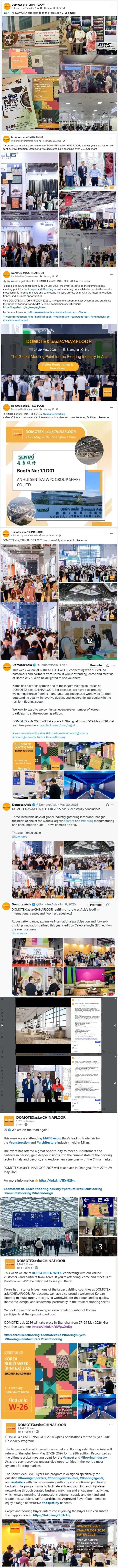 通过布局五大海外社交媒体平台,DOMOTEX asia搭建起连接全球地材人的沟通网络,力求打破线上交流的界限,促成线上对话向线下相聚的跨越。