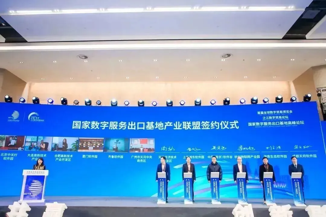 2020年4月,商务部会同中央网信办、工业和信息化部联合发布公告,认定中关村软件园等 12 个园区为国家数字服务出口基地。为贯彻落实国家数字经济发展战略,抢抓新一轮科技革命和产业变革机遇,发挥专业优势,加强信息互通,12家国家数字服务出口基地自愿发起的国家数字服务出口基地产业联盟在论坛宣告成立,并共同提出将以建设数字服务出口的国家队为目标,培育数字服务龙头企业,提升我国数字贸易的全球竞争力。