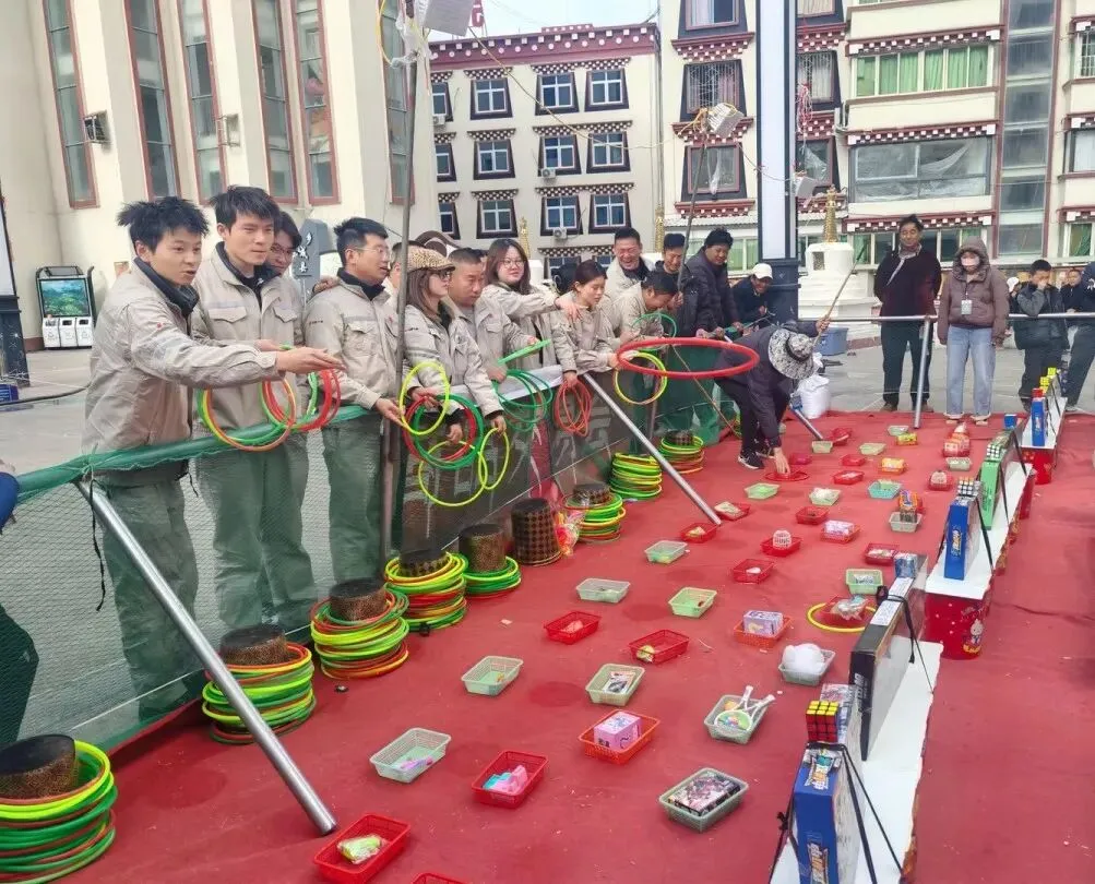 展会现场人气旺盛、热闹非凡,各类特色展位琳琅满目。美食区香气四溢,新疆烤串、糖葫芦等特色小吃前排起长队,地道风味让大家大饱口福;益智游戏展位趣味十足,职工们踊跃参与互动,现场氛围轻松欢快。高原农特产品、文创商品等展位也各具特色,大家穿梭其间,品美食、玩游戏、选好物,处处洋溢着欢声笑语。
