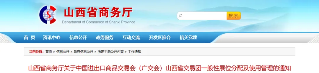 为提高中国进出口商品交易会(以下简称广交会)山西省交易团参展水平,优化参展企业结构,做到展位安排规范、公平、透明,根据《中国进出口商品交易会出口展一般性展位数量安排办法》(会字〔2026〕2号)和《中国进出口商品交易会出口展展位使用管理规定(试行)》(会字〔2025〕10号)(以下简称《管理规定》),结合我省实际,现将做好广交会山西省交易团一般性展位分配及使用管理相关规定通知如下: