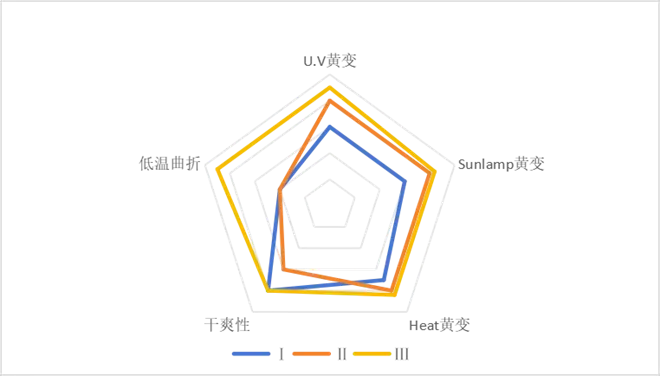 银洋通过自主创新在第二代耐黄变丙烯酸涂饰剂的基础上大大提升了耐低温曲折性能。第三代丙烯酸涂饰剂具有耐黄变、耐低温曲折、环保低气味以及其他综合性能。