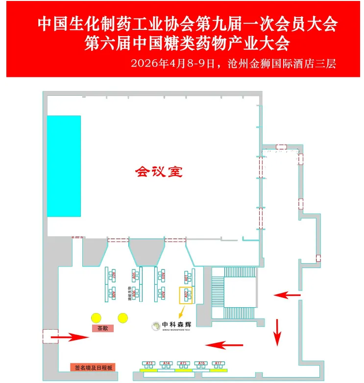 中国生化制药工业协会拟于2026年4月8日召开“中国生化制药工业协会第九次会员大会暨九届一次理事会”,并于4月8日-4月9日同期召开主题为“聚力糖类药物创新,驱动产业高质量发展”的第六届中国糖类药物产业大会。中科森辉微球技术(苏州)有限公司(简称:中科森辉)受邀出席本次产业大会并在展览区设有展位:A02;将携带糖类药物分离纯化明星产品(离子交换层析介质、凝胶过滤层析介质等产品)、预装柱以及分离纯化整体解决方案亮相大会现场,诚邀各位老师、业界同仁莅临参观交流,共同探讨行业发展新机遇。