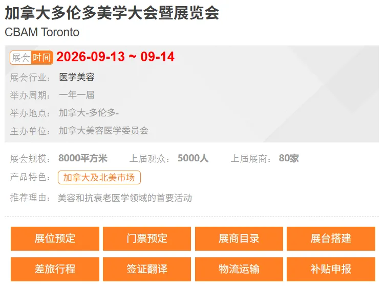【展会数据】2026年9月加拿大多伦多美学大会暨展览会CBAM Toronto