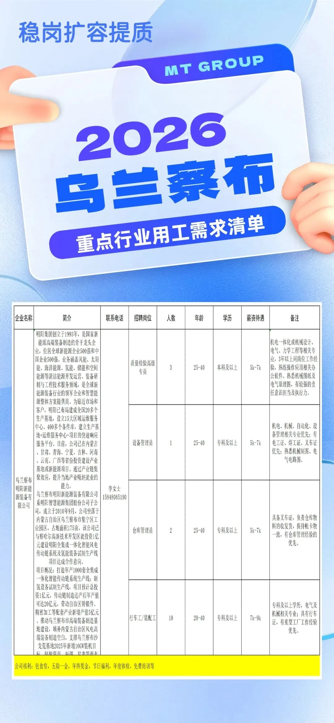 稳岗扩容提质|2026年乌兰察布市重点行业企业用工需求清单(第57期)