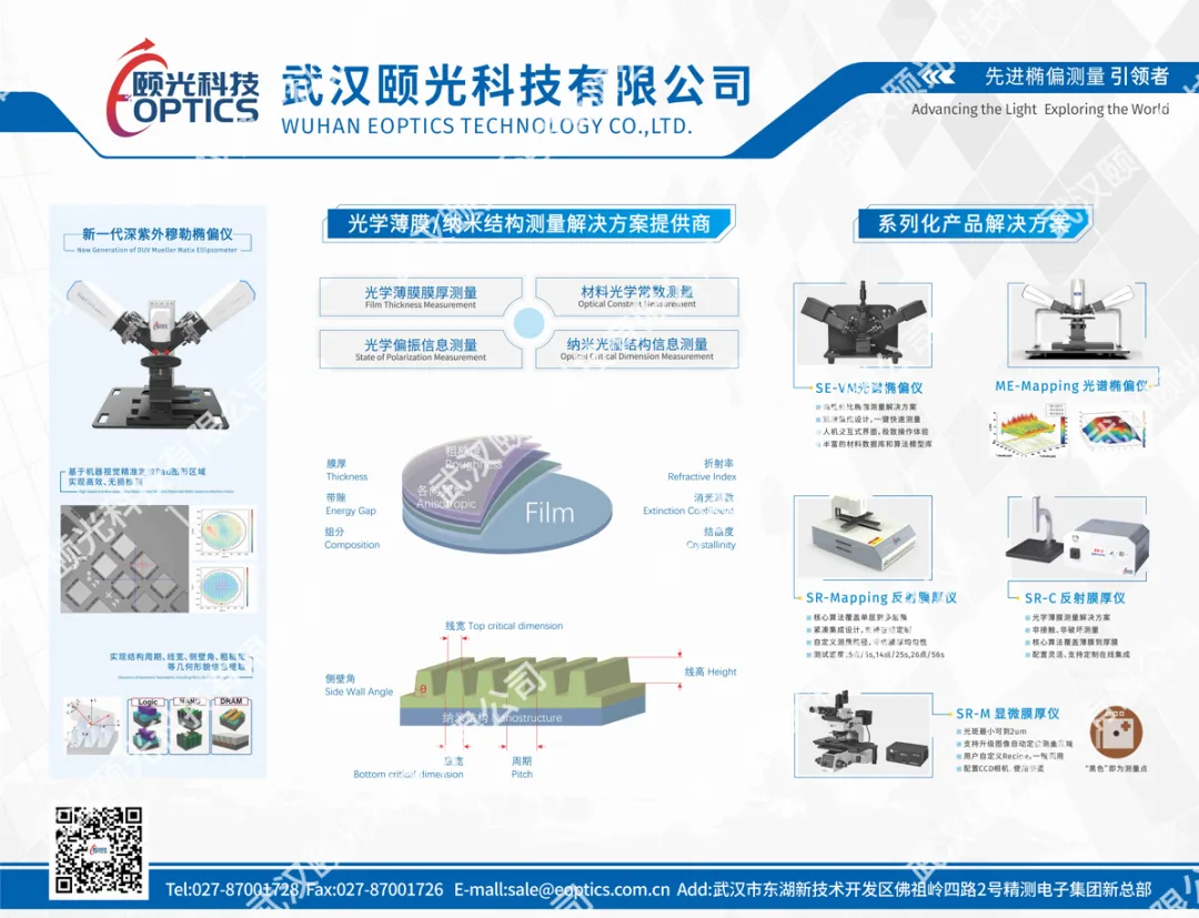 核心产品包括系列化光谱椭偏仪(SE)、反射膜厚仪(SR)、傅里叶变换红外光谱仪(FTIR)及晶圆形貌量测设备等,广泛应用于半导体、显示面板、光通信、新能源、光学镀膜、应用材料及科学研究等领域,为客户的研发创新与质量管控提供精准、高效的光学量测解决方案。