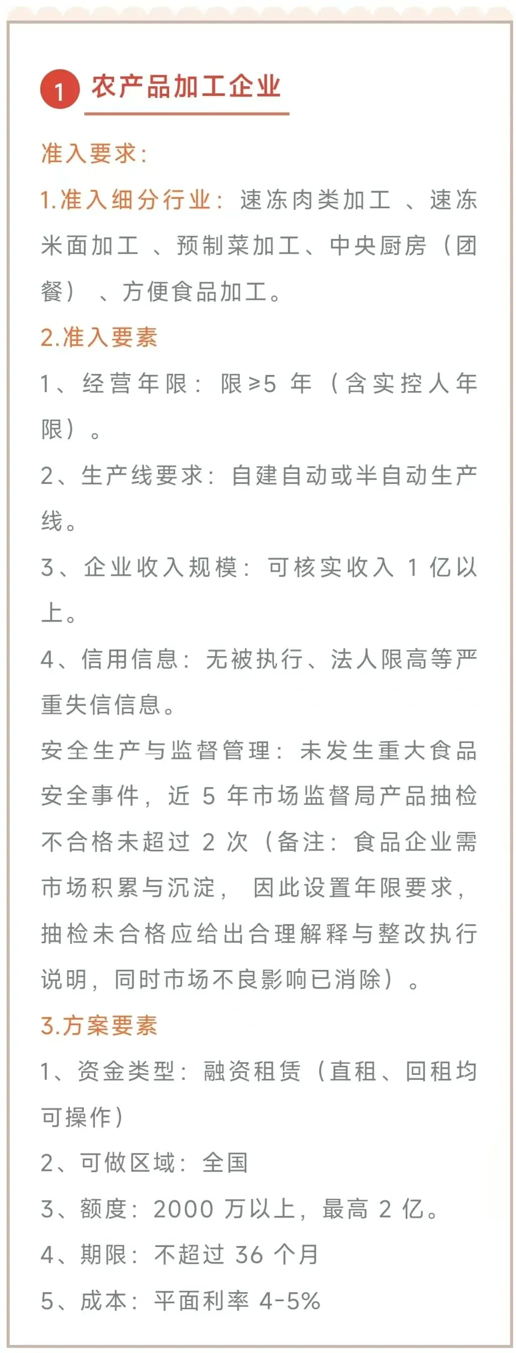 •代采控货融资:企业入准营收要求10000万以上,原材料为大宗流通品,如有色金属、不锈钢、铅、钨、锰,塑料,牛猪肉冻品,农副产品小麦玉米大米,纺织品布线绒等等加工企业,可以采用代采+厂区控货模式。