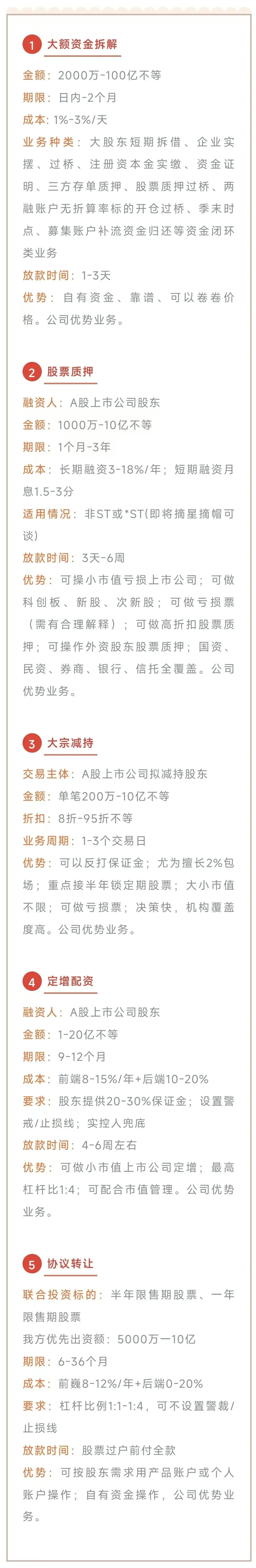 我司产品不局限于以上内容,因为企业融资是一企一方案,今天的分享希望能给大家融资做参考,如若你对企业融资有任何想法,欢迎大家一起交流、探讨,共同寻求更好的融资解决方案。