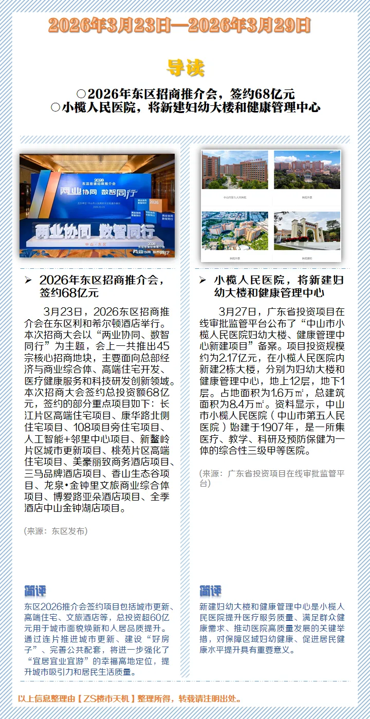 2026年东区招商推介会签约68亿元;小榄人民医院将新建妇幼大楼和健康管理中心