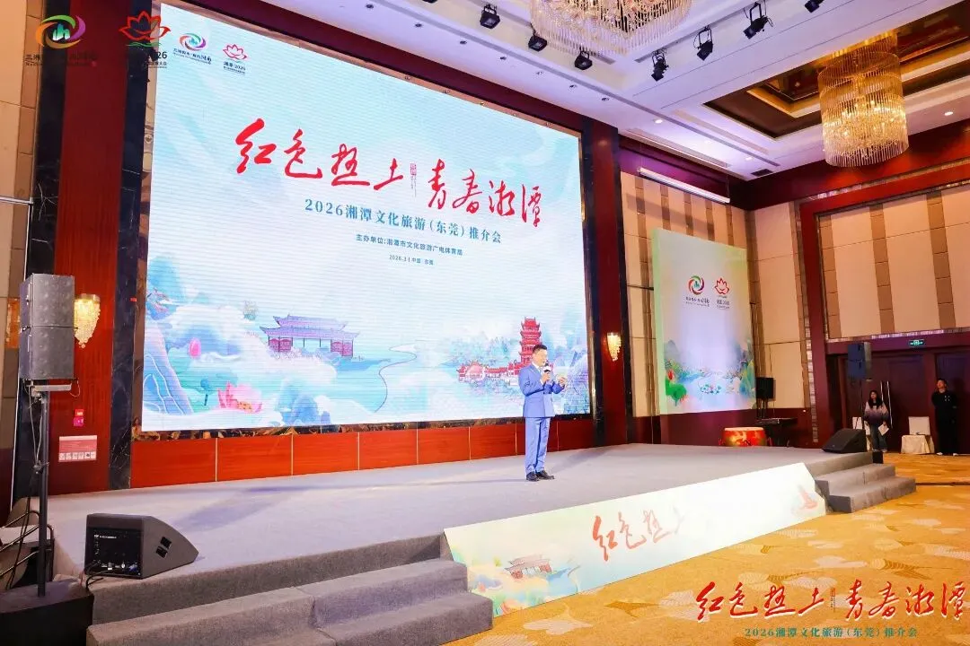 3月20日,由湘潭市文化旅游广电体育局主办的“红色热土 青春湘潭”2026湘潭文化旅游(东莞)推介会在东莞举行。来自湘潭、东莞两地的重点旅行社、景区景点、文旅企业代表以及新闻媒体等齐聚一堂,共同见证湘潭与东莞文旅同业就线路互推、客源输送等方面达成多项合作共识,为第六届湖南旅游发展大会升温造势,开启湘潭文旅深耕粤港澳大湾区客源市场的新篇章。