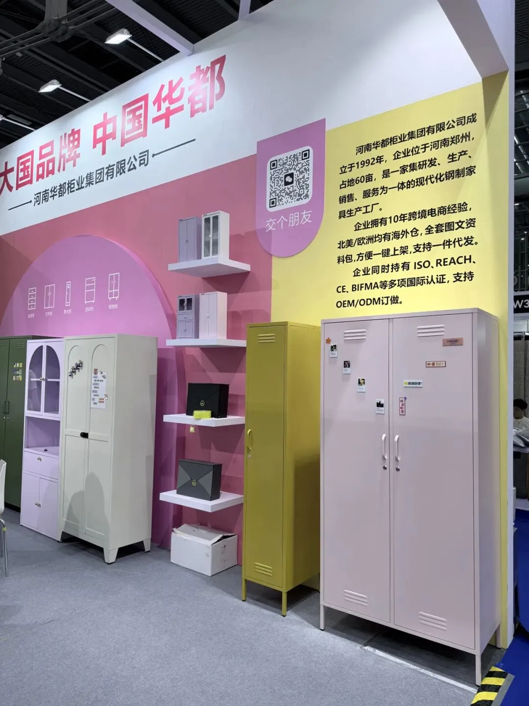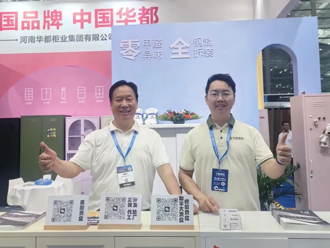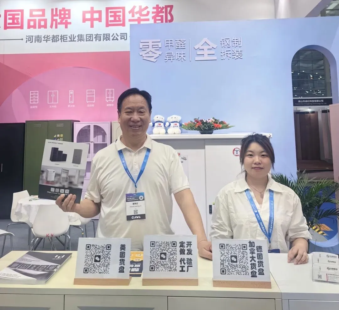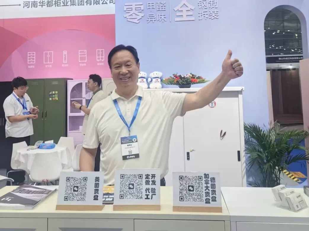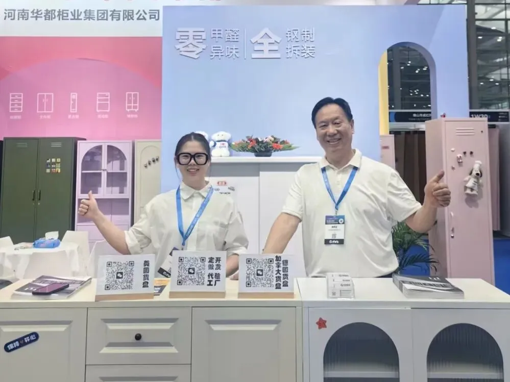 所有展品均贴合海外市场规格标准、审美偏好与收纳需求,依托华都三十余年钢制家具技术积淀,秉持“零甲醛、零异味、全钢制、全拆装”核心特质,搭配国际化设计与完善的国际认证体系,一经亮相便吸引众多海外采购商、跨境头部大卖家与行业伙伴驻足咨询、深度洽谈,成为现场焦点之一。