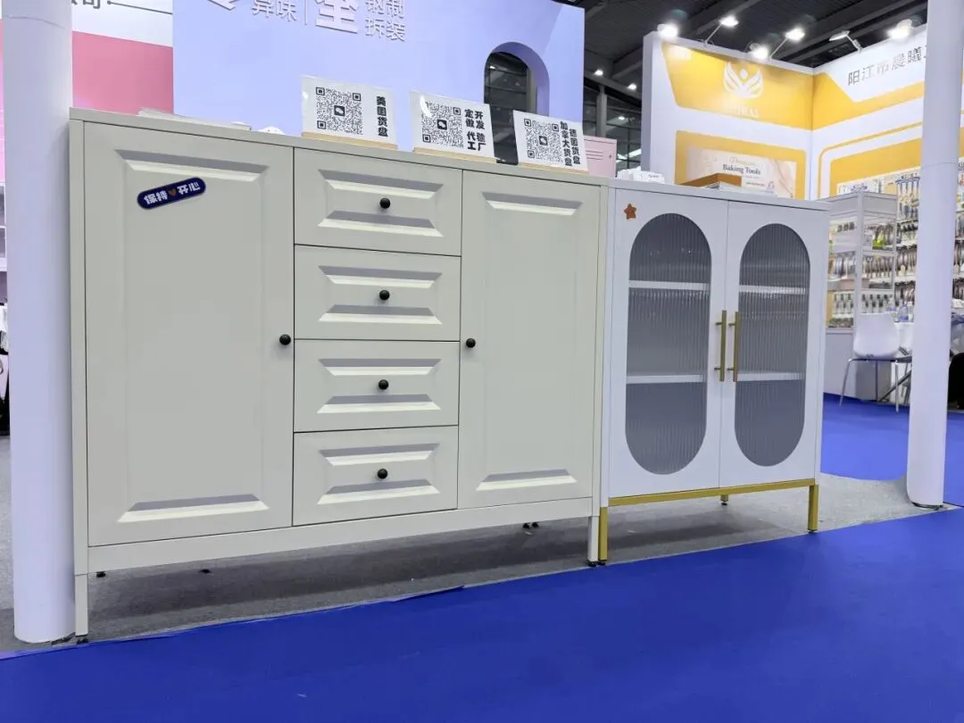董事长周克俊、总经理周旭强亲临展会现场,深度参与品牌交流与商务洽谈,尽显华都集团深耕海外市场的坚定决心。华都紧扣海外家居市场消费趋势与实际使用场景,在1V26展位集中展出餐边柜、收纳柜、鞋柜、家用储物柜、工具柜、衣柜、角落柜、信报箱全系列核心产品。