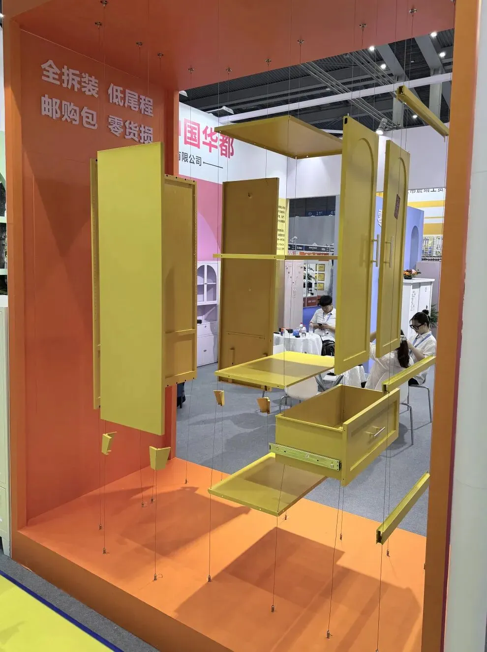 华都——全球知名的中国品牌,为精准适配跨境电商发展趋势,破解大件家具跨境物流痛点,华都集团全新升级展位设计,以创意3D爆炸图形式,生动诠释“全拆装、低尾程、邮购包、零货损”的产品核心理念,让到访客商直观感知华都产品在降低物流成本、减少运输损耗方面的突出优势,切实传递出企业深耕跨境市场、用心服务全球客商的满满诚意,也彰显了华都强大的产品创新与柔性定制能力。