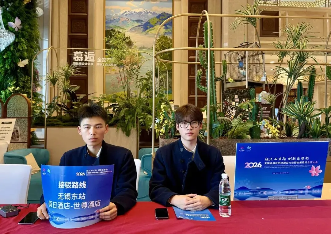 3月25日-27日,以“融汇四方智,创新聚势能”为主题的2026无锡会展目的地建设大会暨会展投资合作大会在无锡国际会议中心隆重举行。本次大会由中国会展经济研究会、江苏省会议展览业协会、中国国际贸易促进委员会无锡市委员会支持和指导,无锡太湖国际会展集团有限公司与固始会展行业协会联合主办。文化旅游学院依托与无锡太湖国际会展集团共建的“太湖会展产业学院”,组织会展策划与管理专业师生全程参与大会,在行业前沿实践中深化产教融合,提升人才培养质量。