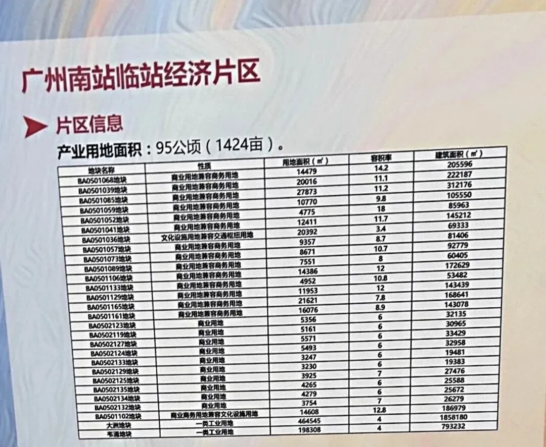 其中广州南站片区推介土地最多,其中产业用地多达28块,居住用地2块。