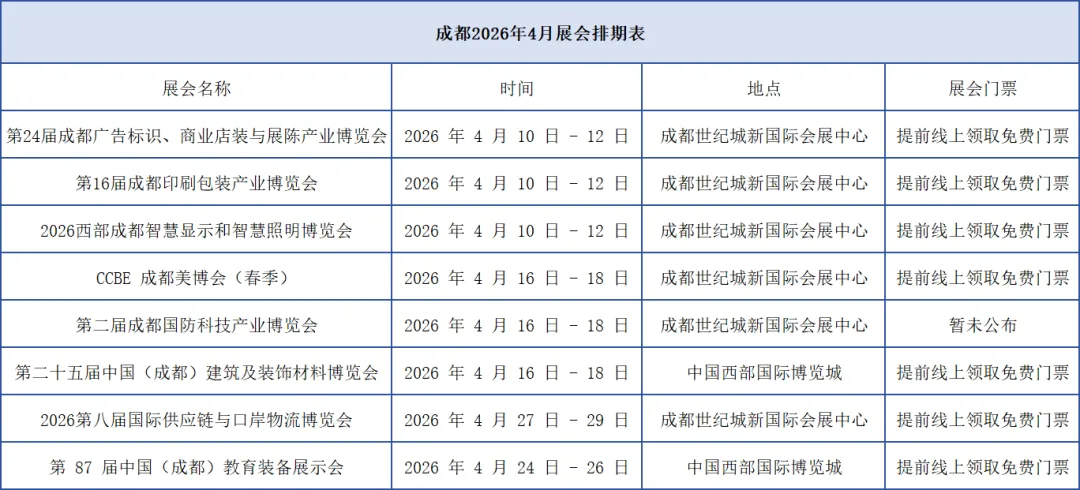 成都4月展会排期来啦!大多免费!附免费领票入口→