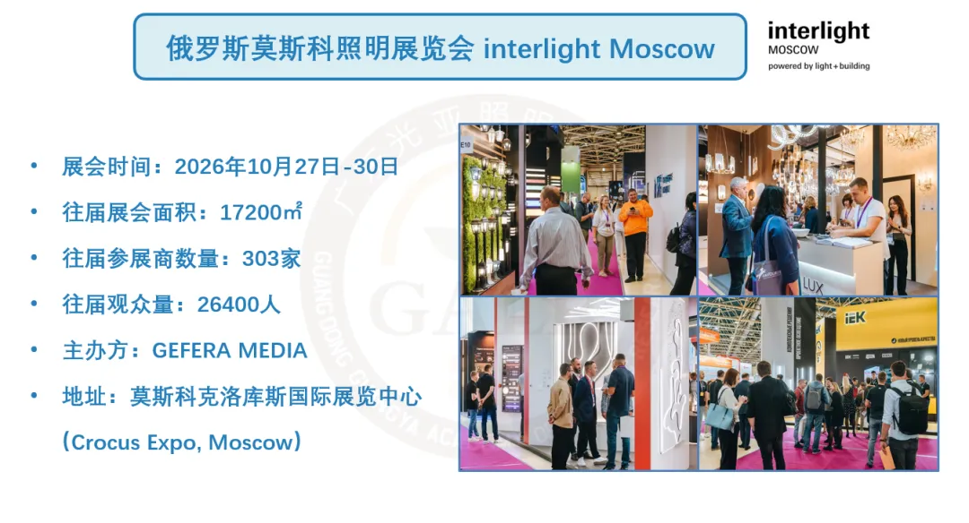 光亚照明研究院近年来致力于基于全球照明产业研究来引领中国照明企业实践“走出去”战略。现推出全球照明市场及展会巡览系列图文及视频,今天推出第七期:俄罗斯。
