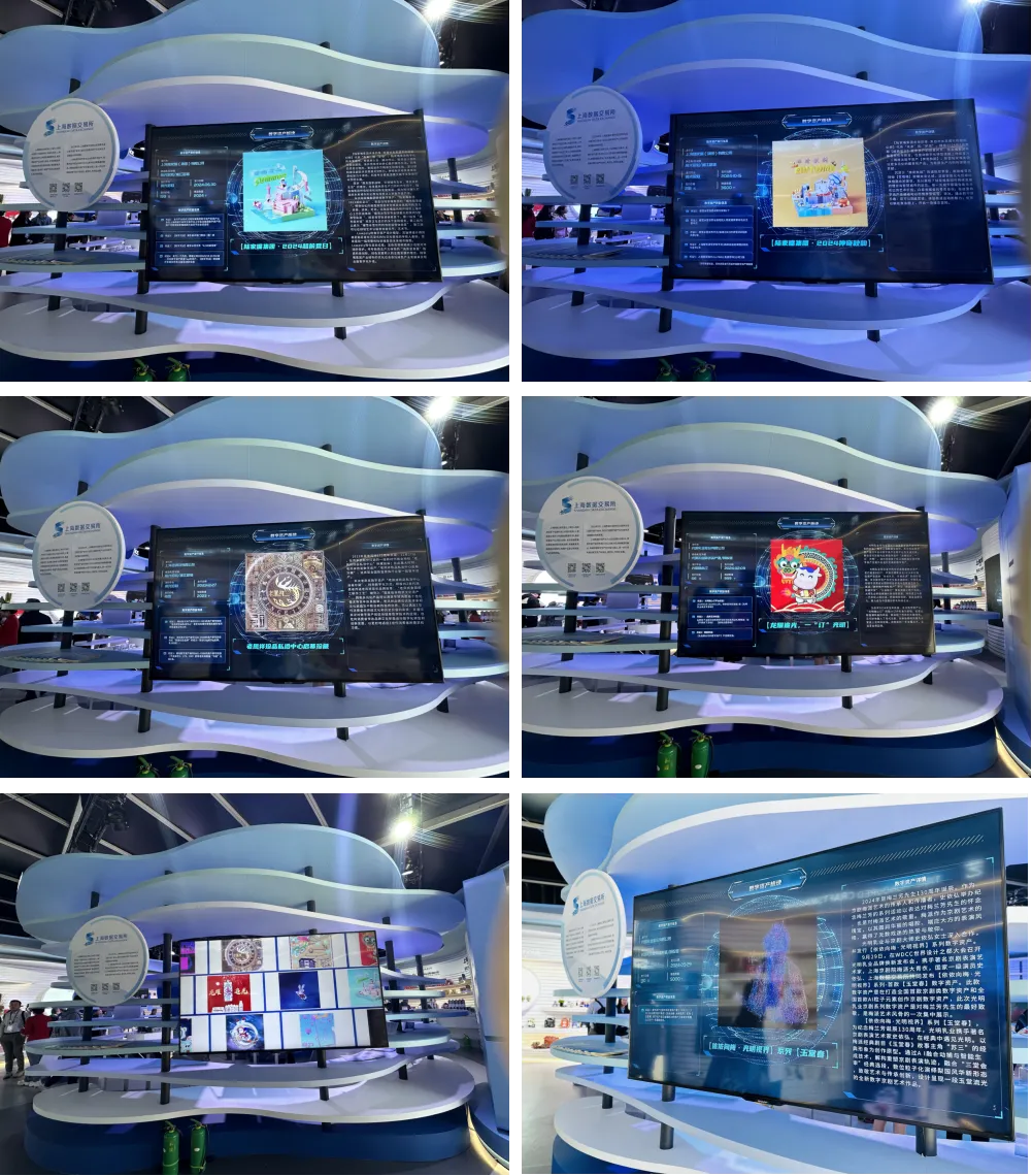 电子屏展示每个数字资产的发行方、铸造商/区块链、发行平台、发行日期、发行价格、铸造数量以及数字资产权益信息和数字资产的发行背景做出详细描述,也让进博会参观者对数字资产的发行框架有了更深入的了解。